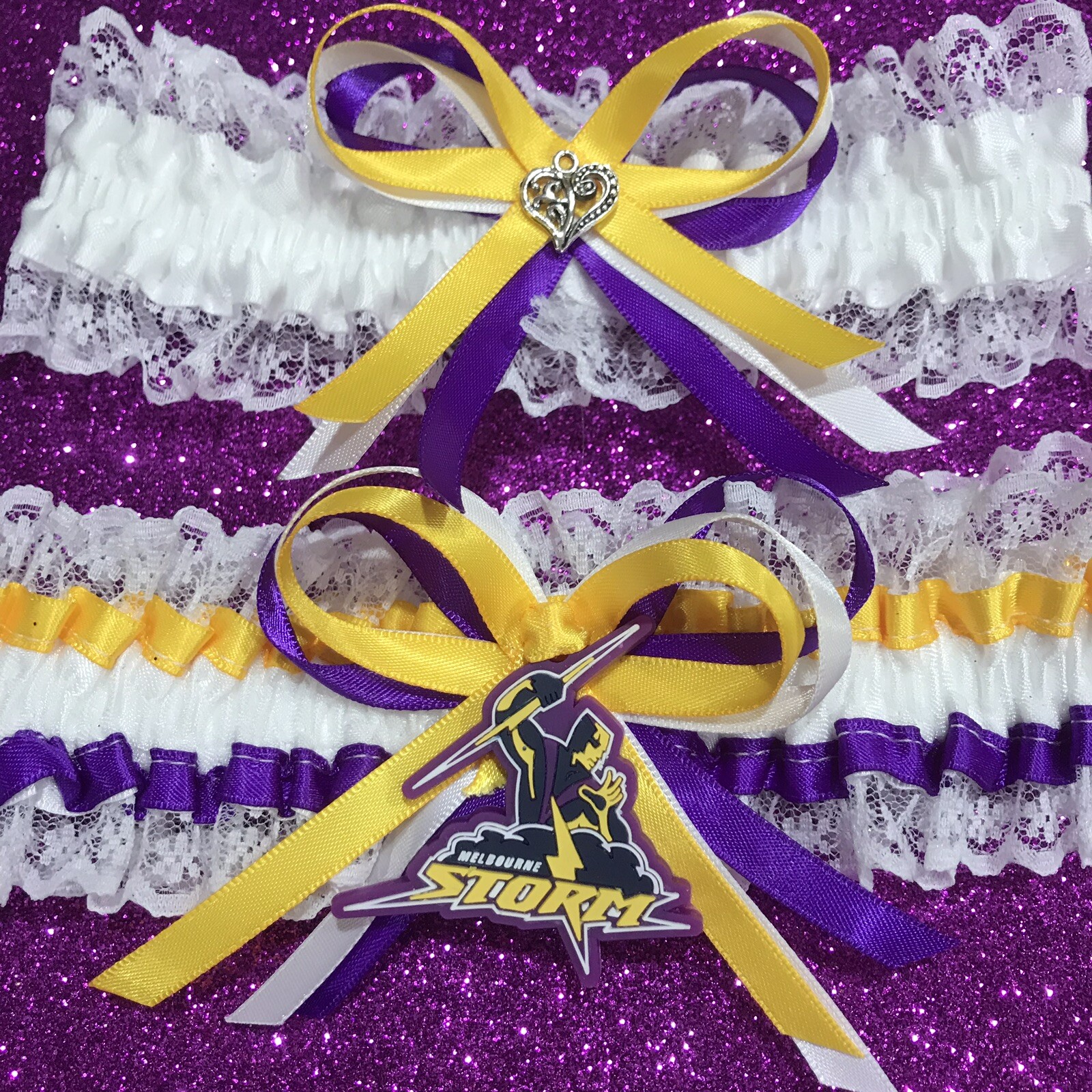 Melbourne Storm NRL Licenced tag on Brides Wedding garter Set All sizes,plus
