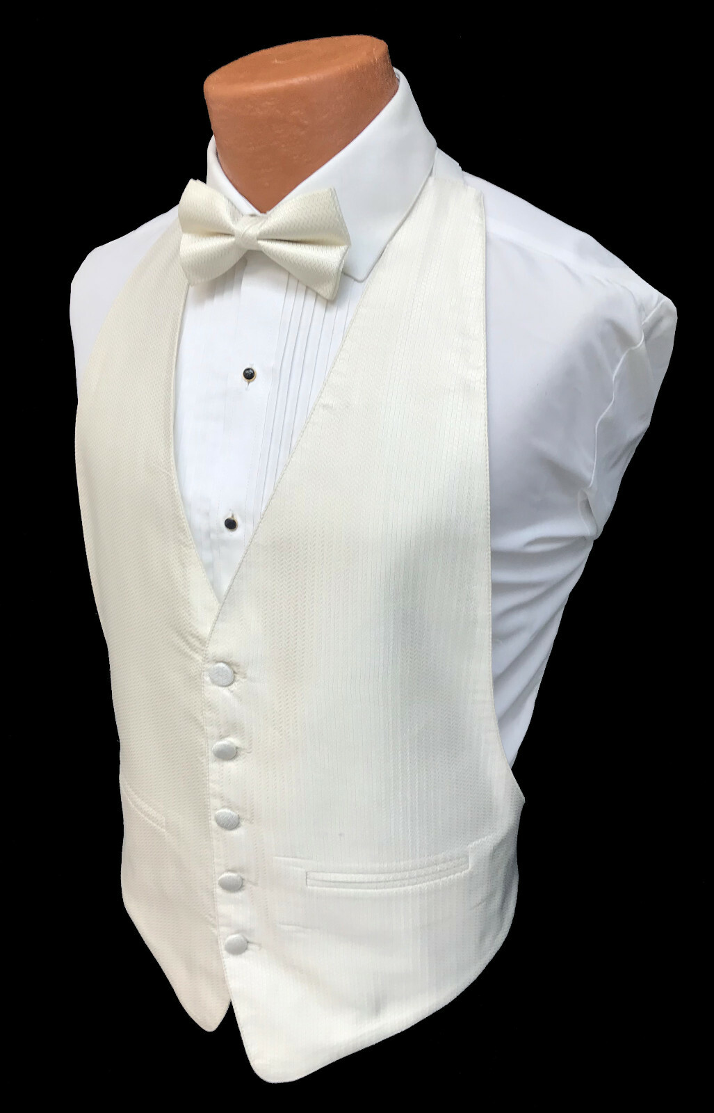 Boys Ivory Tuxedo Vest Tie Open Back Herringbone Tailcoat Wedding Ring Bearer