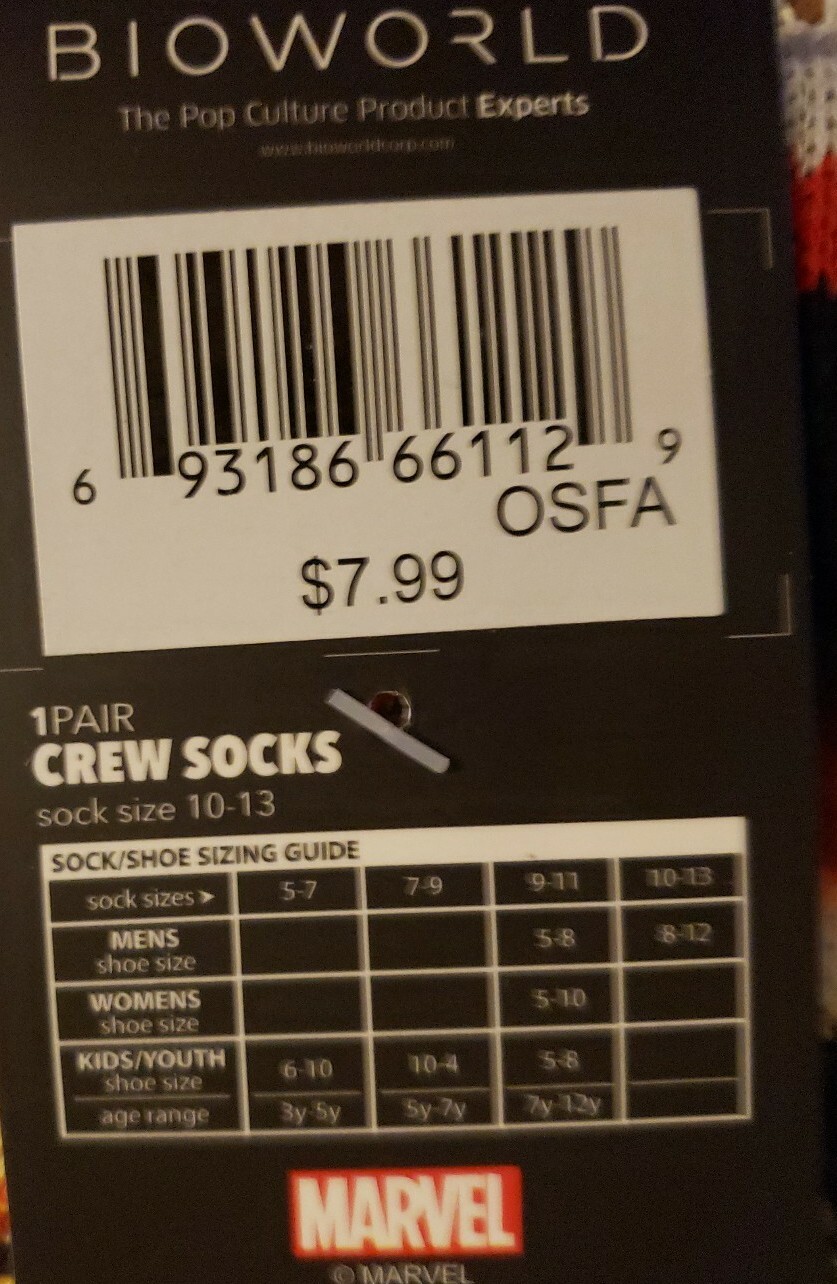 Marvel Heroes Bioworld Socks-Size 10-13 Black Panther/Captain America/more