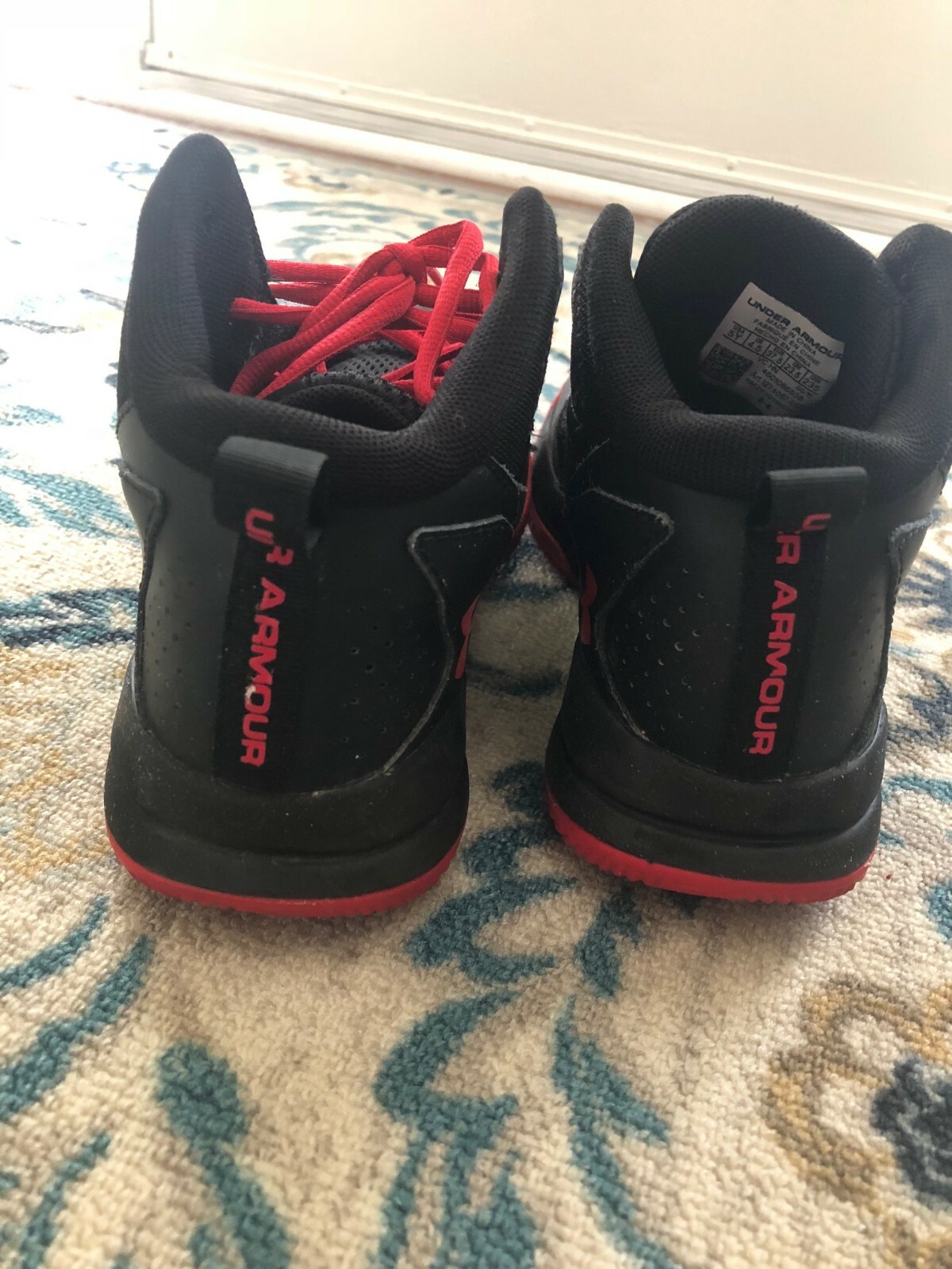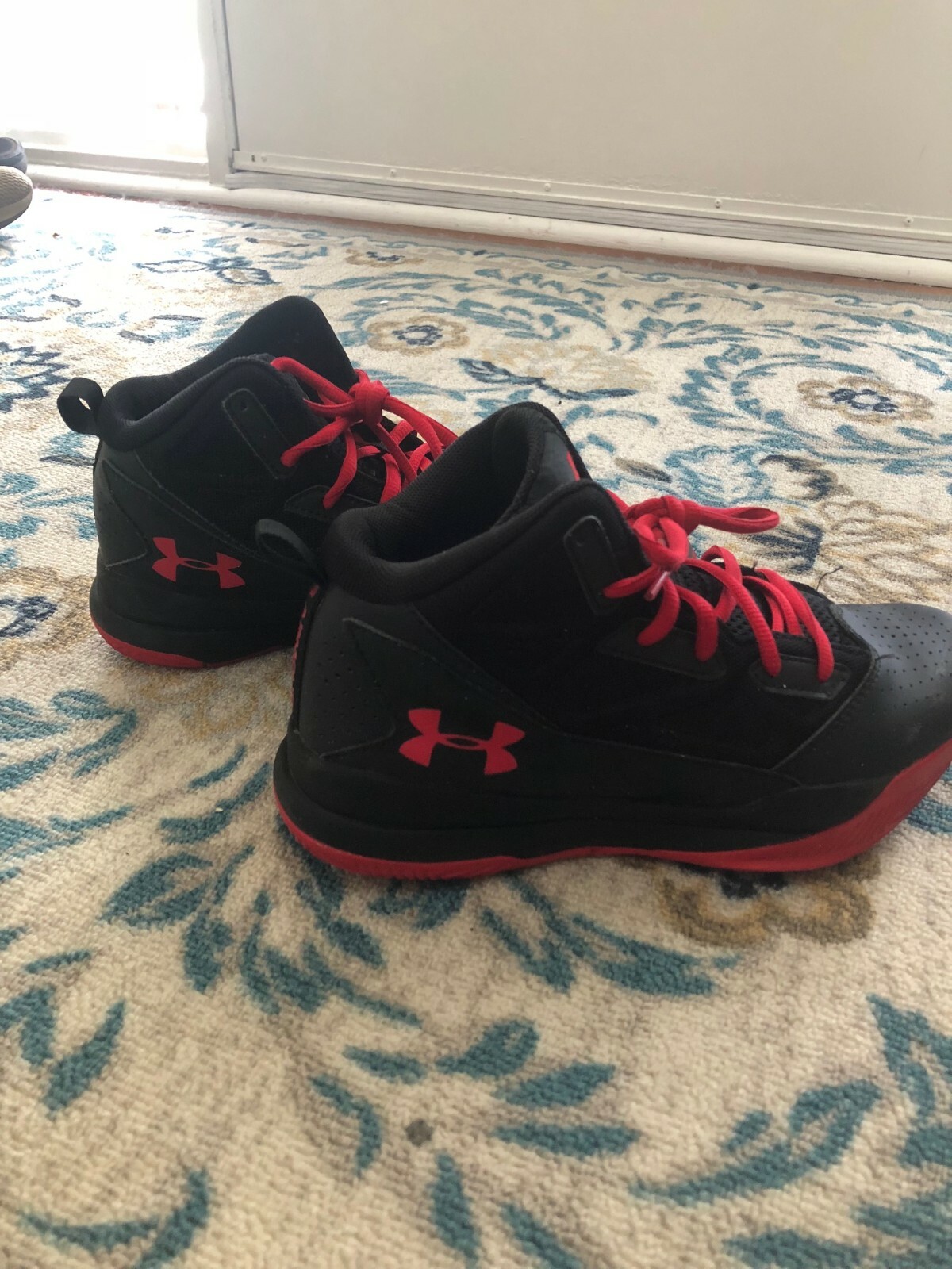 как выглядит Boys UNDER ARMOUR JET red black mid Athletic Basketball Shoes 5 High Top фото