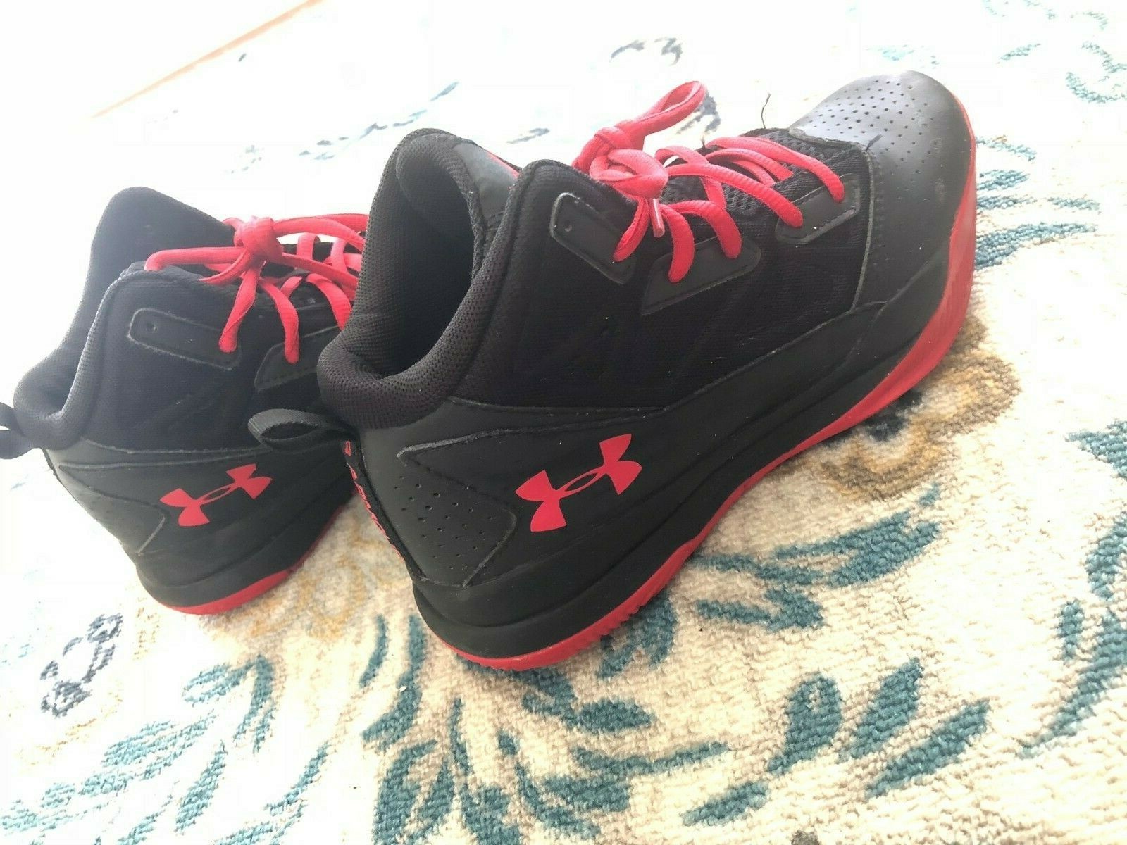 Boys UNDER ARMOUR JET red black mid Athletic Basketball Shoes 5 High Top