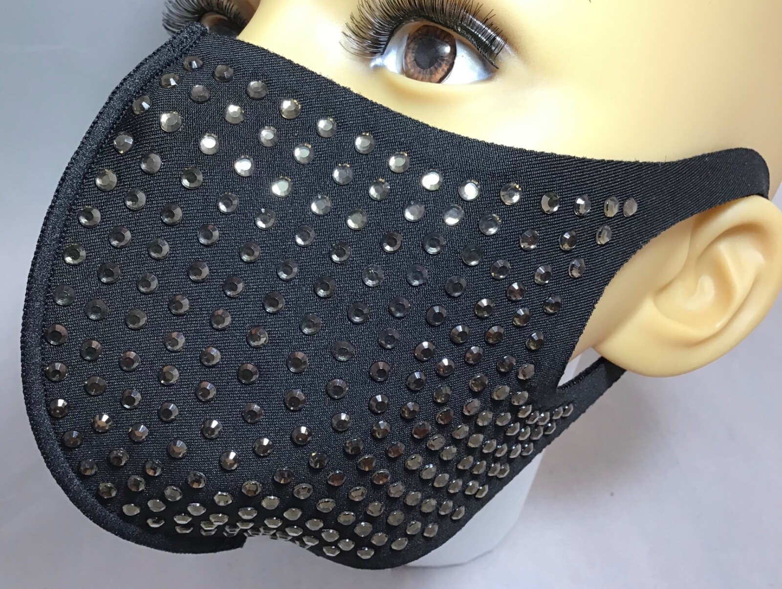 как выглядит 2pcs/pack Fashion Glamour Face Mask Reusable Stretch -Black Dimond Rhinestones фото