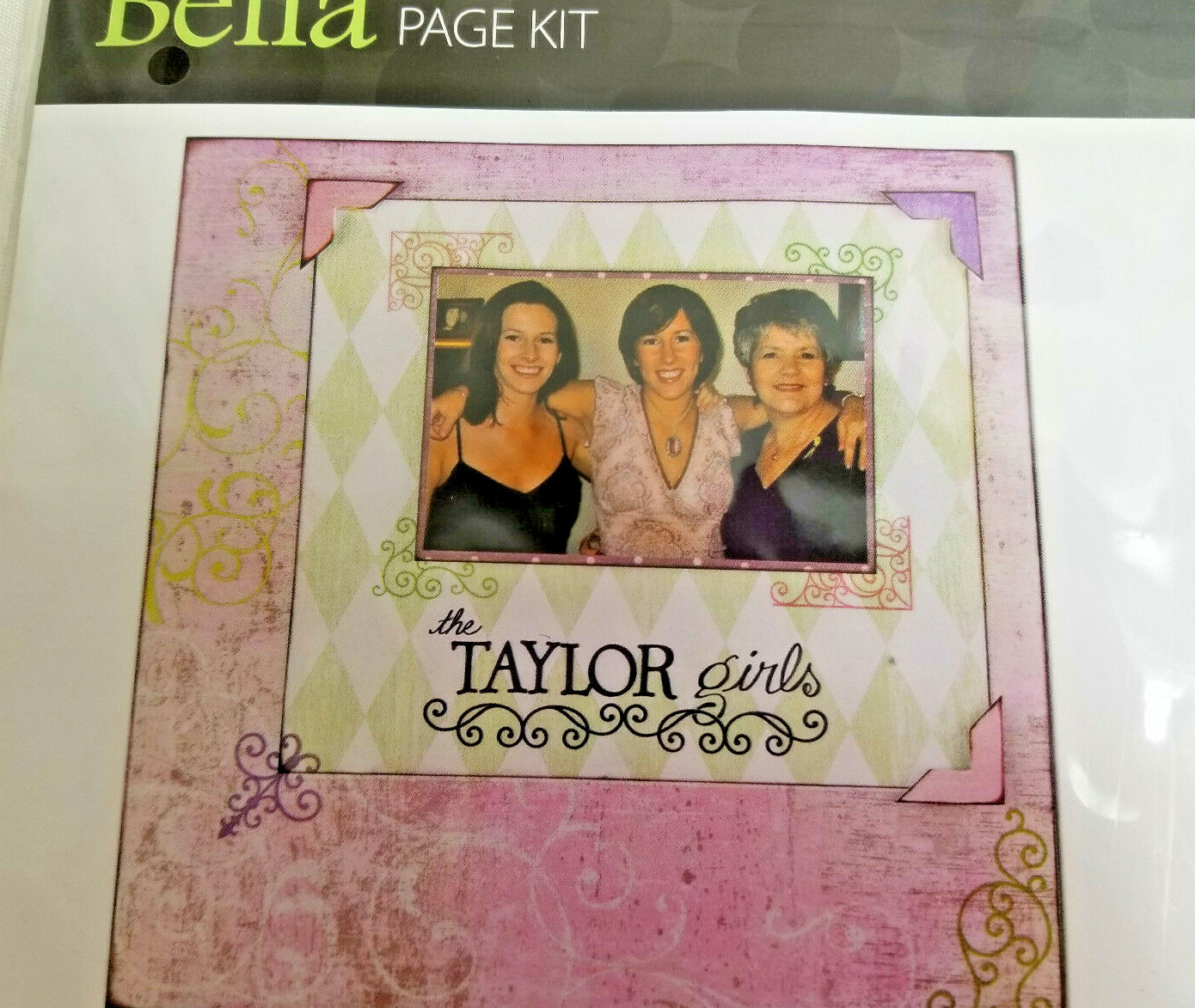 Scrapbook Page Kit BELLA Pattern Pink Green Girlfriends 12 x 12 Sheets