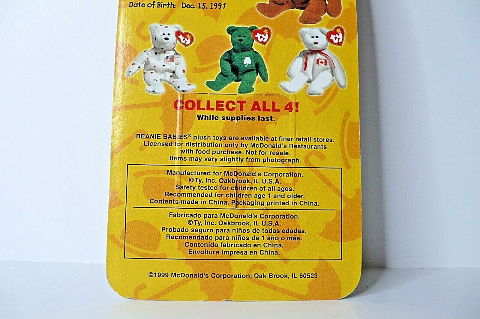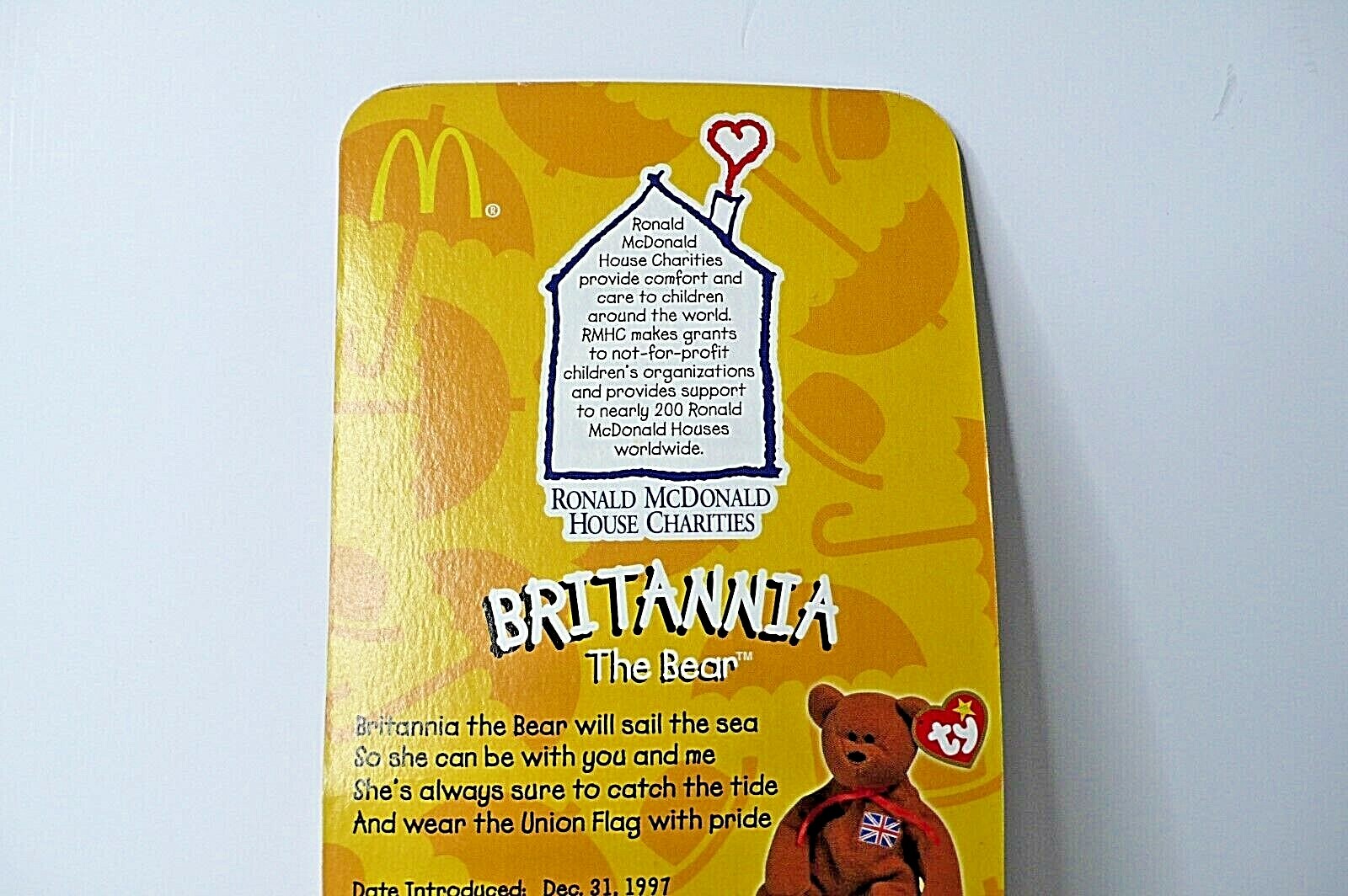 Mcdonalds TY Beanie Baby Britannia The Bear RARE WITH ERRORS 1993 OakBrook Toys