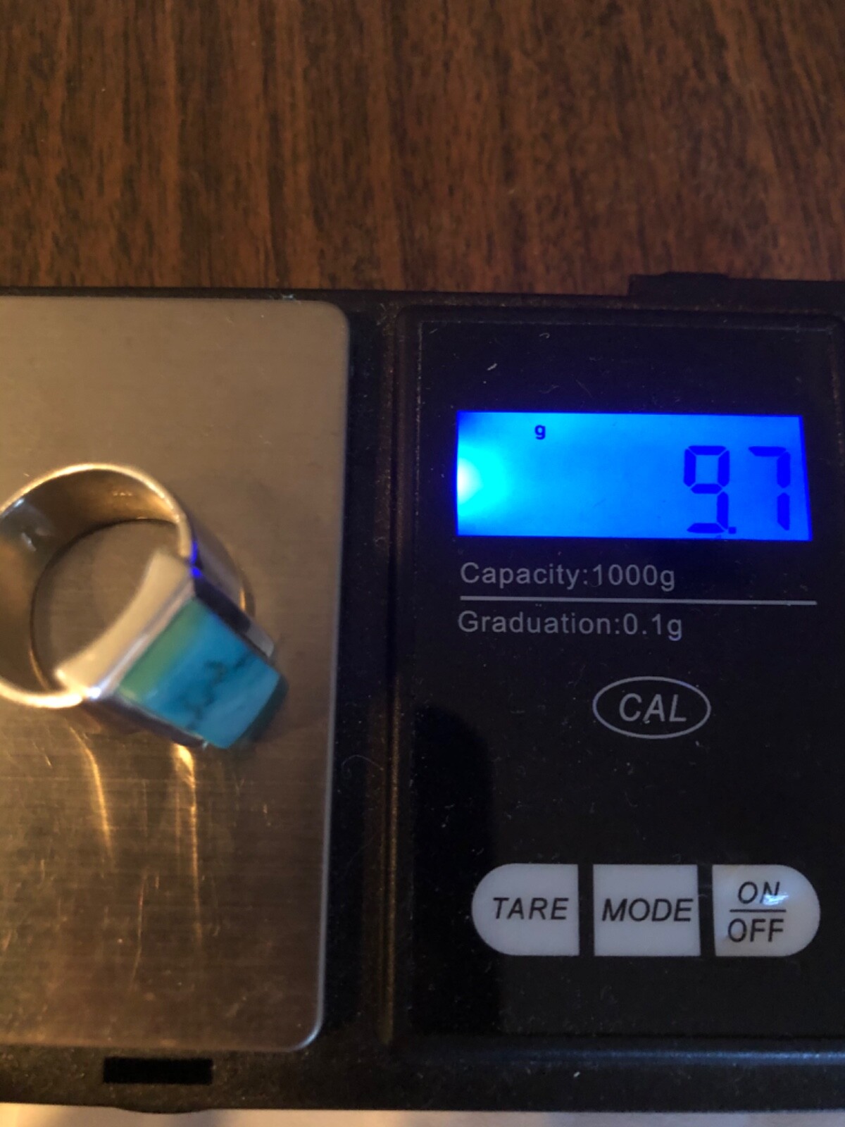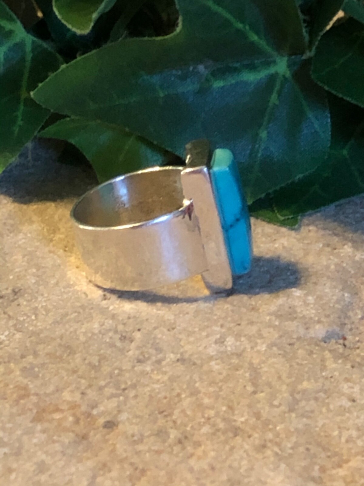 как выглядит STERLING SILVER Large Turquoise Wide Band Ring 9.7 Grams Size 6.75 Beautiful фото