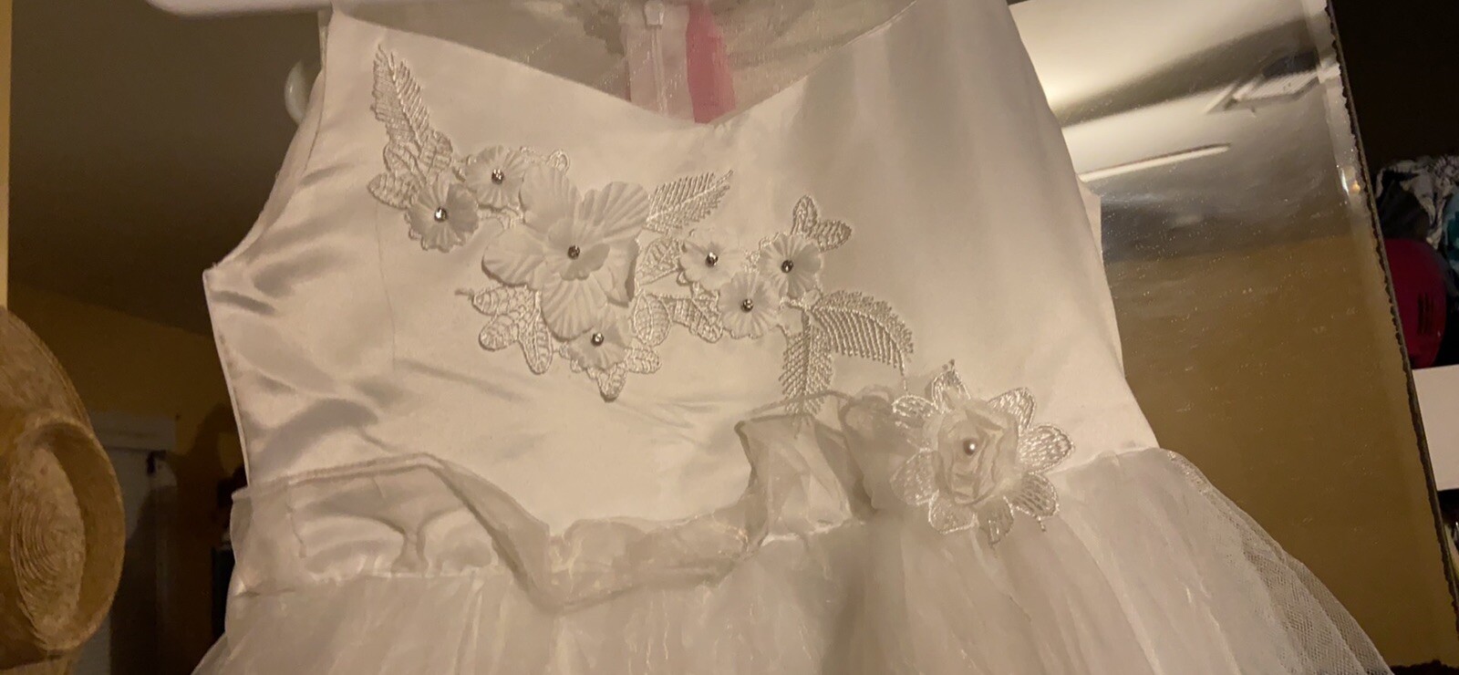 как выглядит Girls white formal wedding flower girl dress size 12 With Can-can Under Skirt фото
