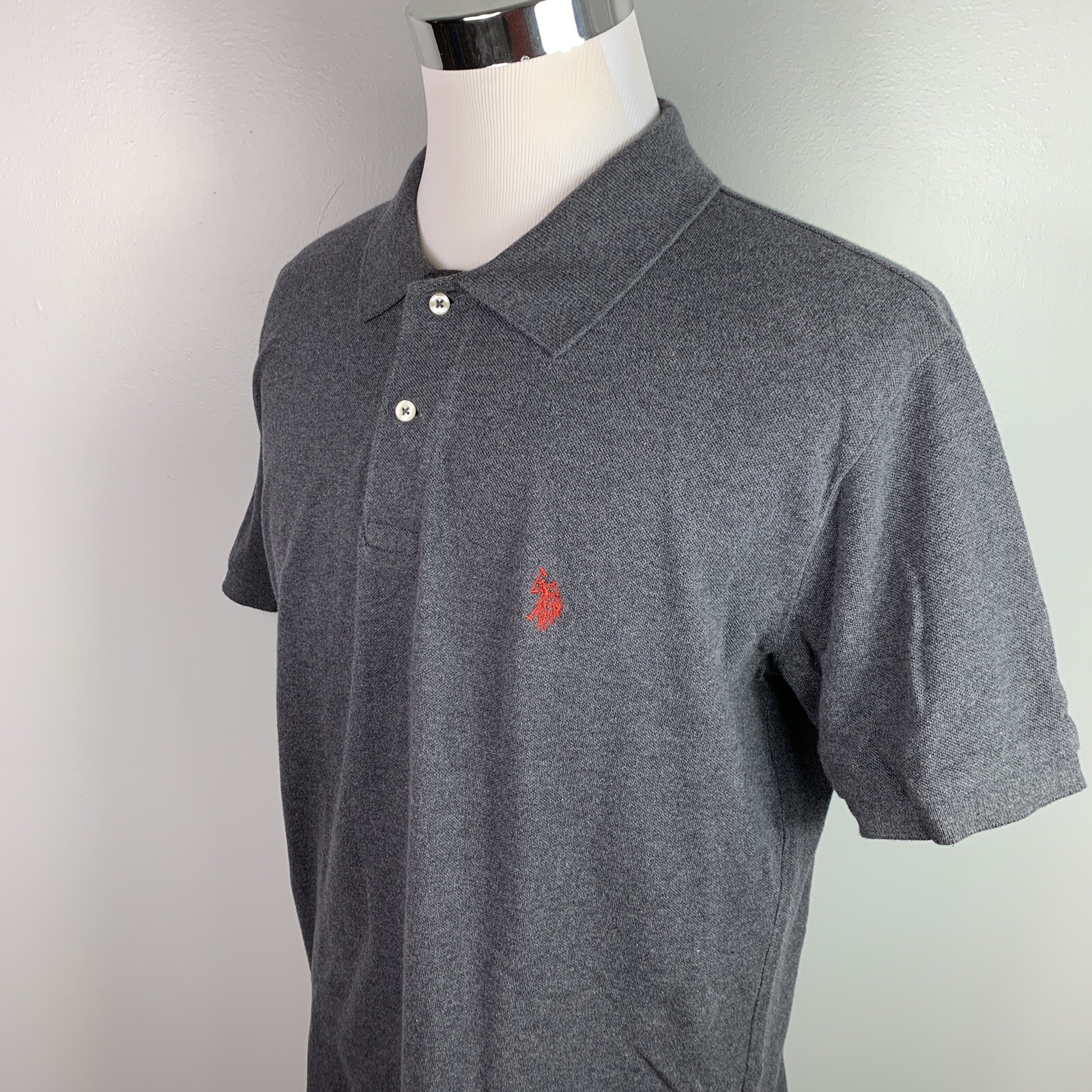 U.S. Polo Assn. / Mens Short Sleeve Pique Polo Shirt / Gray w/ Red Logo / Size L