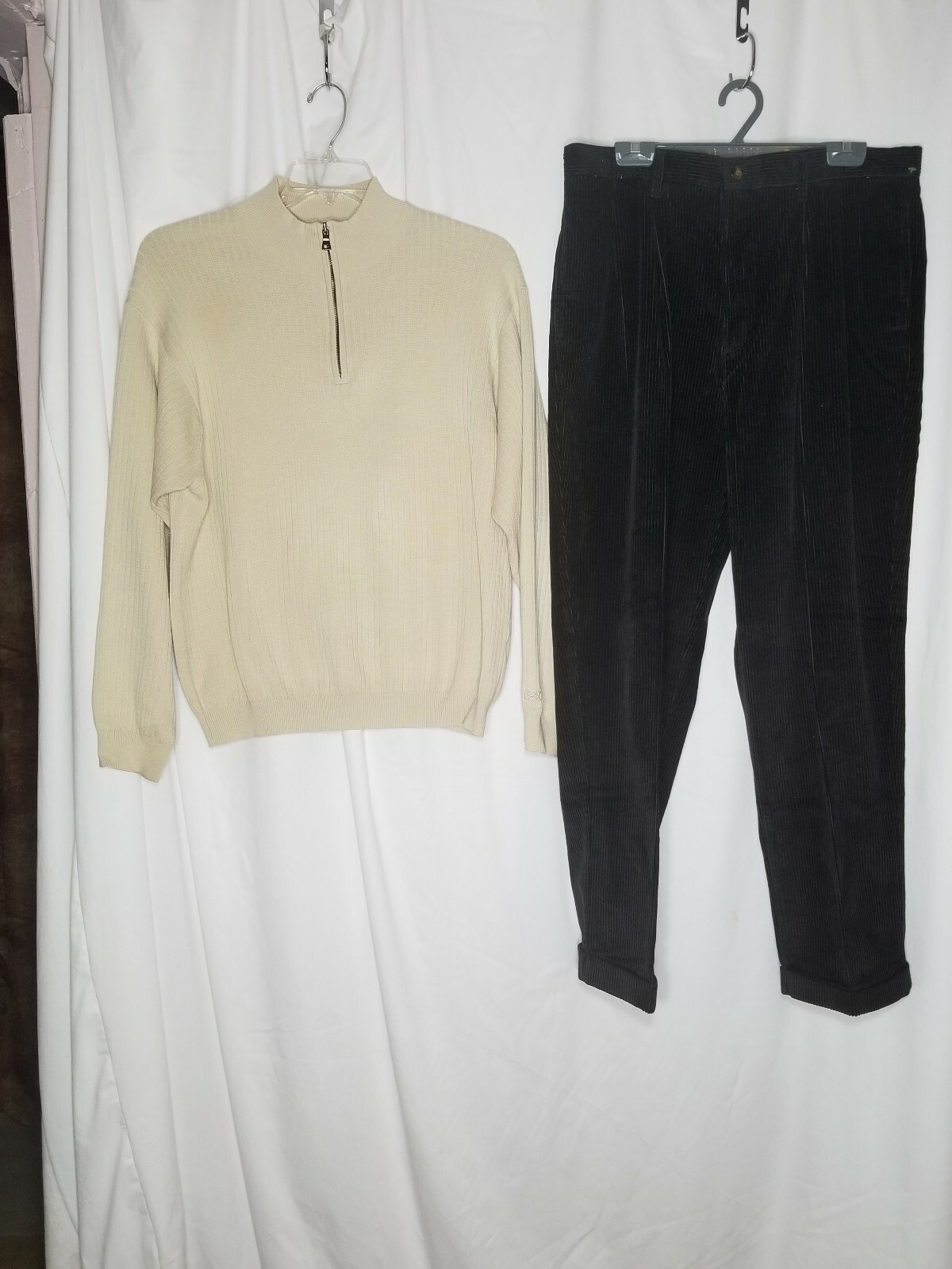 как выглядит Cutter Buck Cream Pullover L / Dockers Pleated Front Corduroy Pant set 38x31" фото