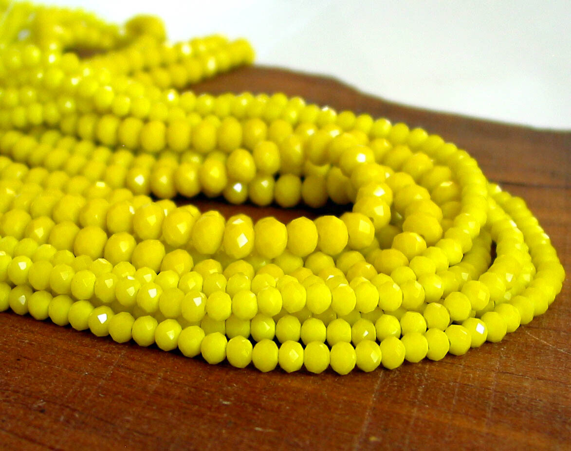 18 4mm 6mm Opaque Yellow Crystal Glass Rondelle Faceted Beads