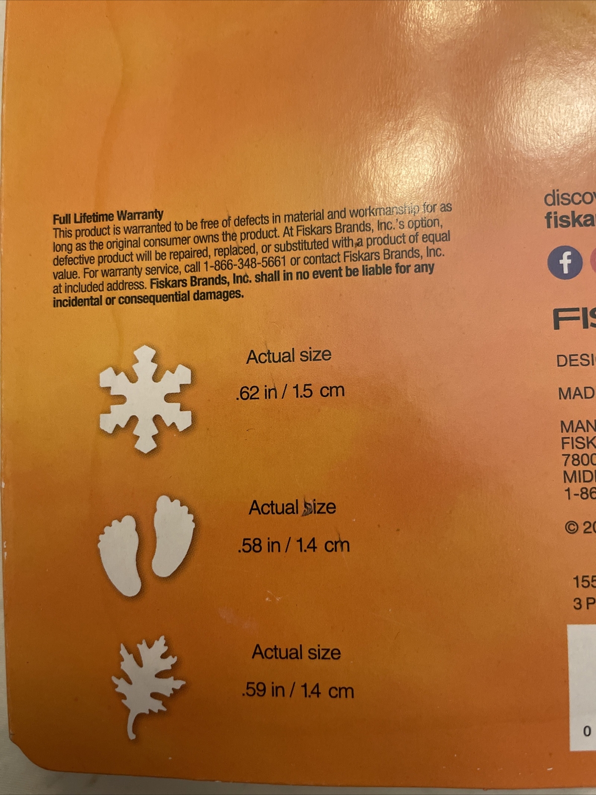 New 2015 Fiskars Snowflake/Feet/Leaf Lever Punch Set