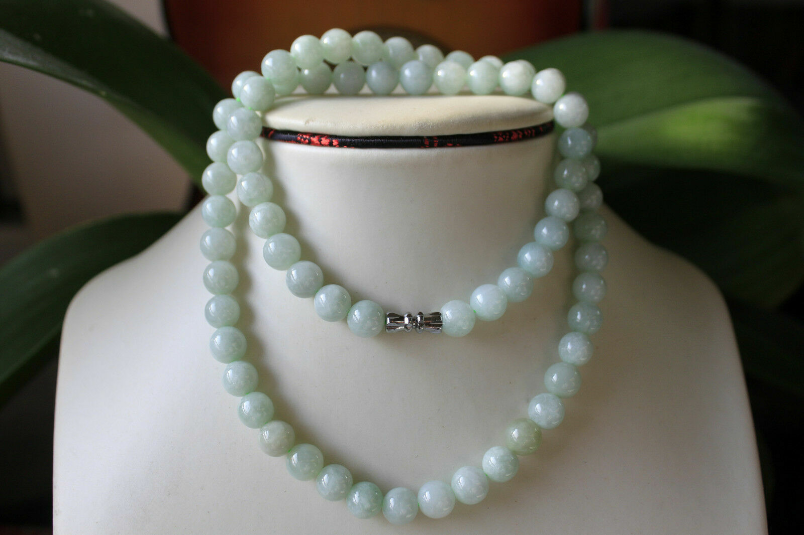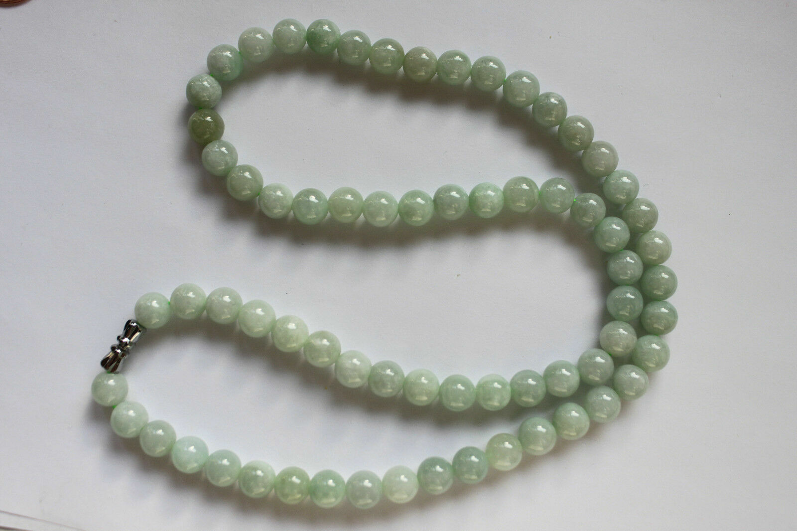 • Certified Natural Grade A Untreated Light Green Jadeite Jade Necklace N275