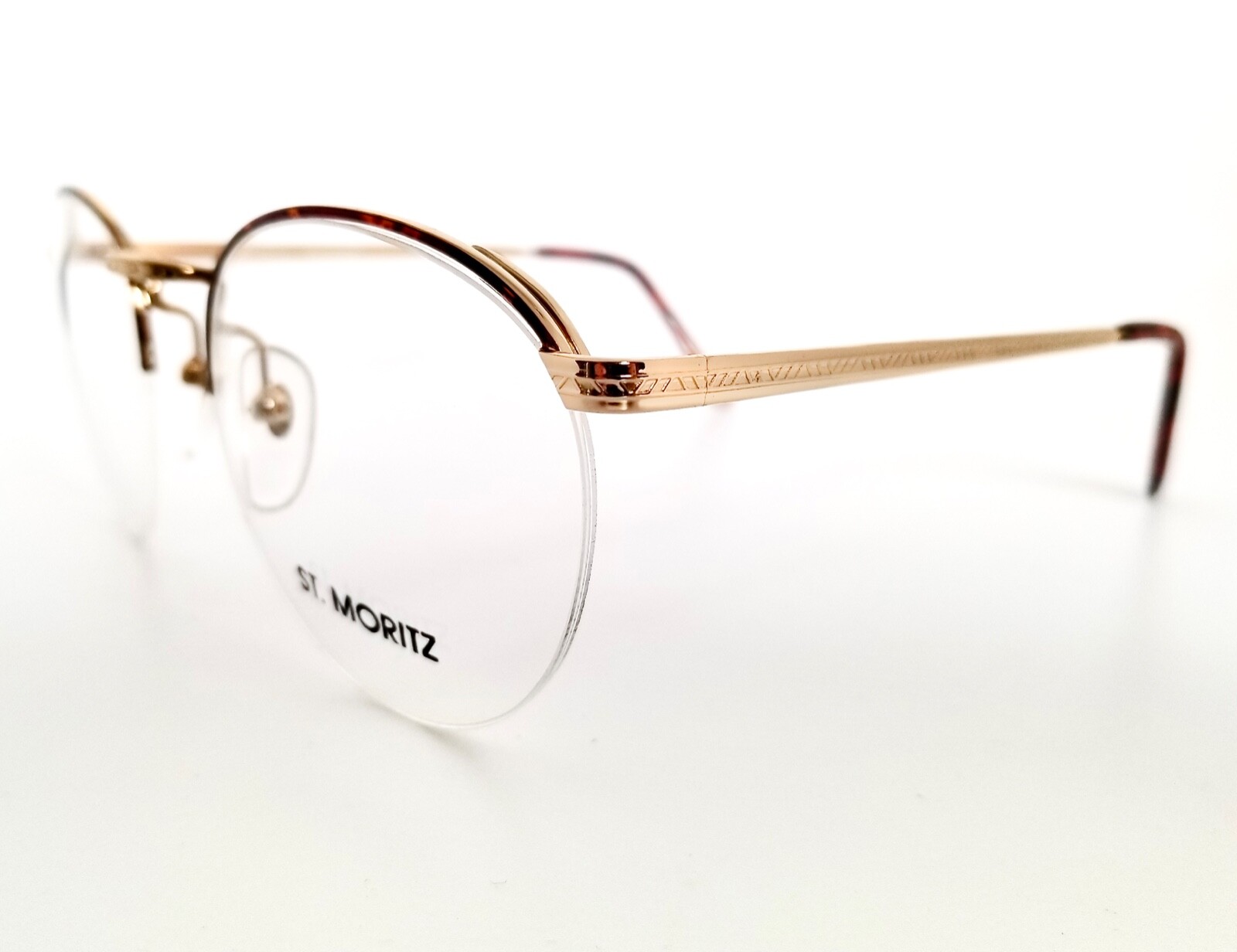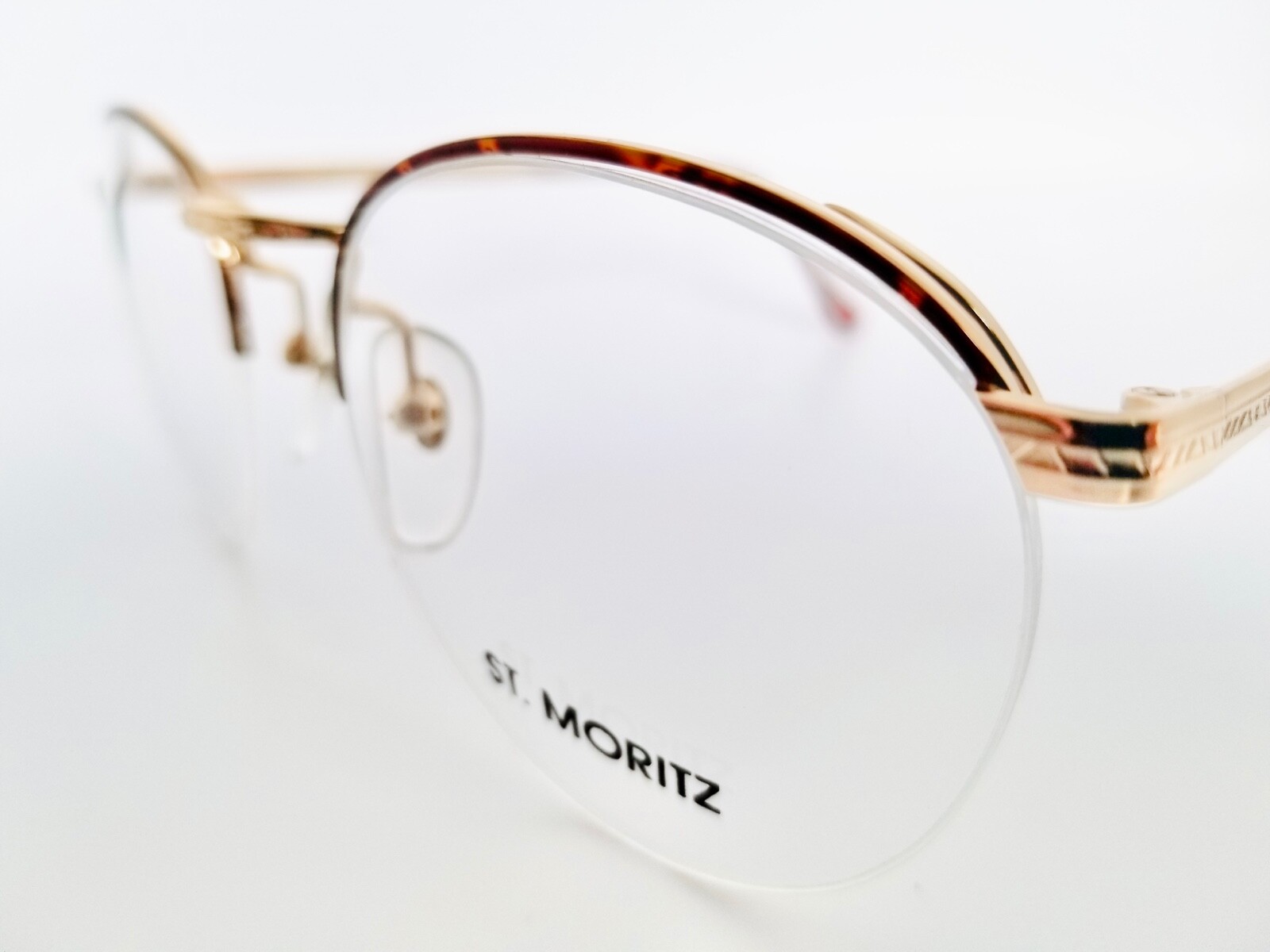 New Vintage St. Moritz Shiny Fire Tortoise Semi Rimless Large Eyeglass Frames