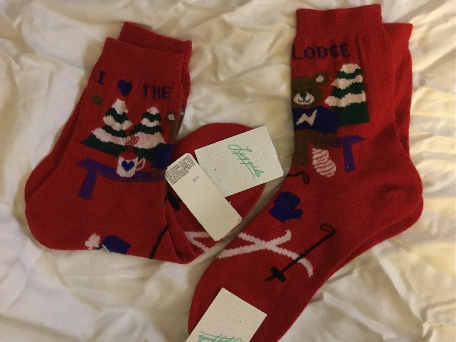 Ladies Holiday Socks 2 Pair Size 9-11 Leg Gale Gift For Skier. New Free Ship
