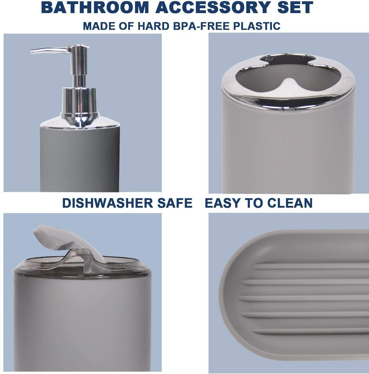 Grey Bathroom Accessories Set Bath Ensemble for Decorative Countertop 6 Piece