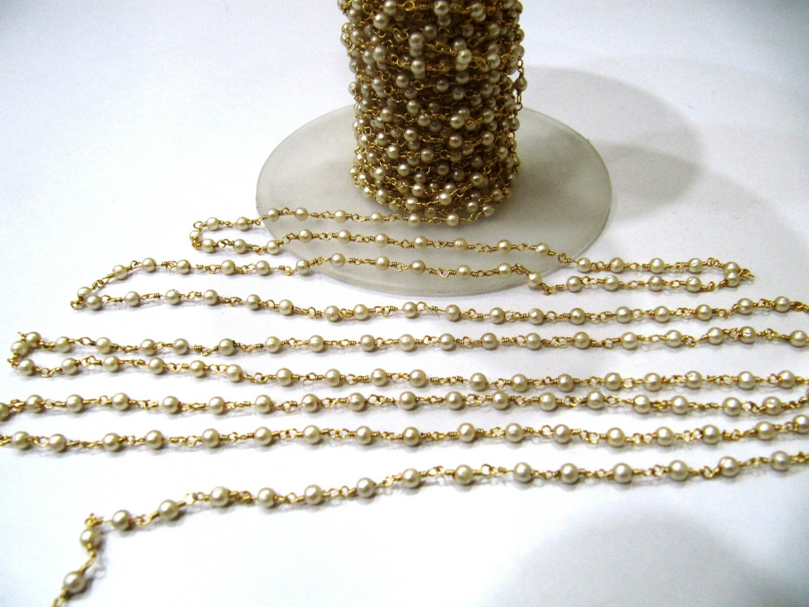 3 Ft- Pearl Beaded 3mm Size Round Shape Faux Pearl Bead Rosary Chain