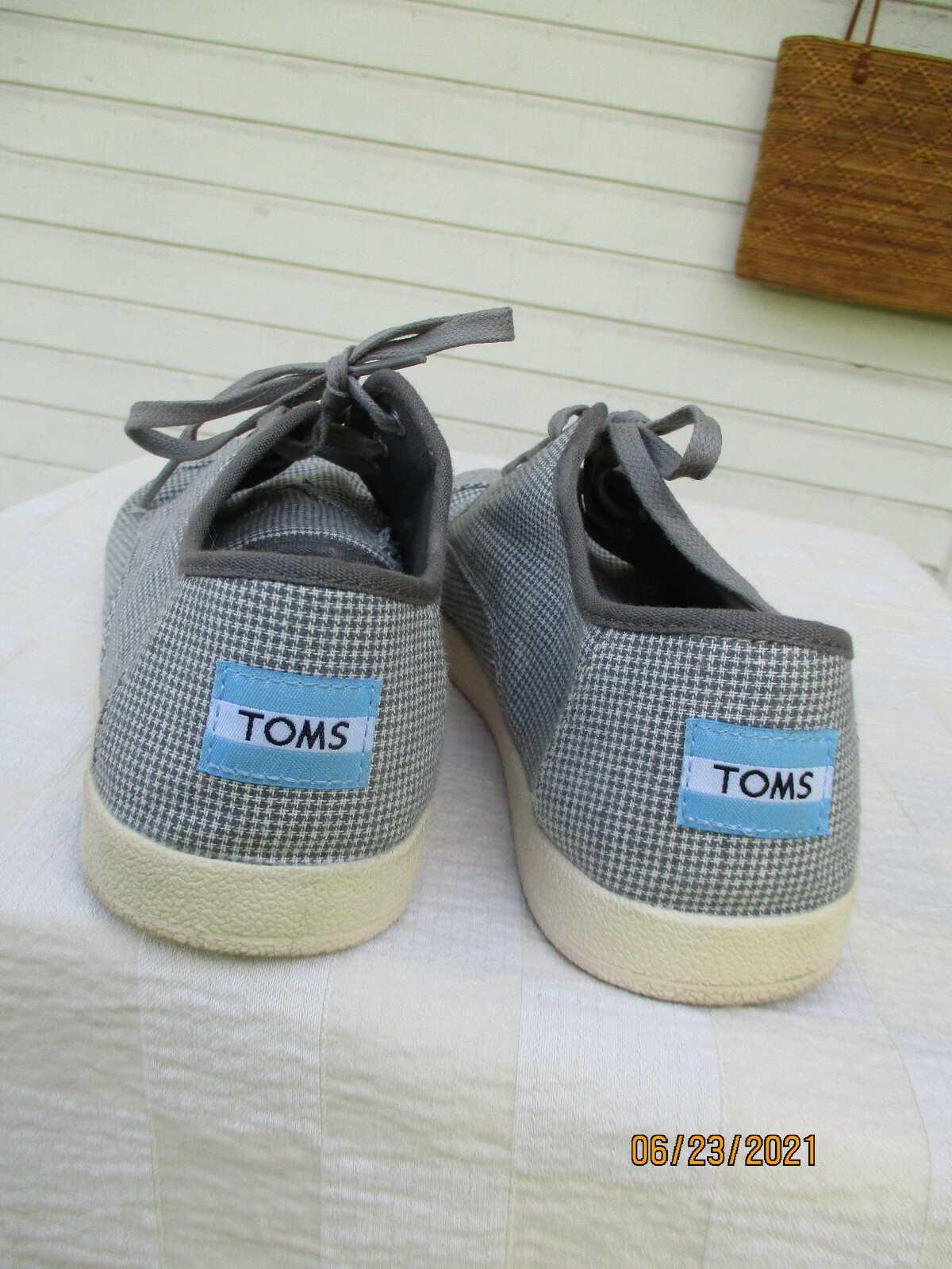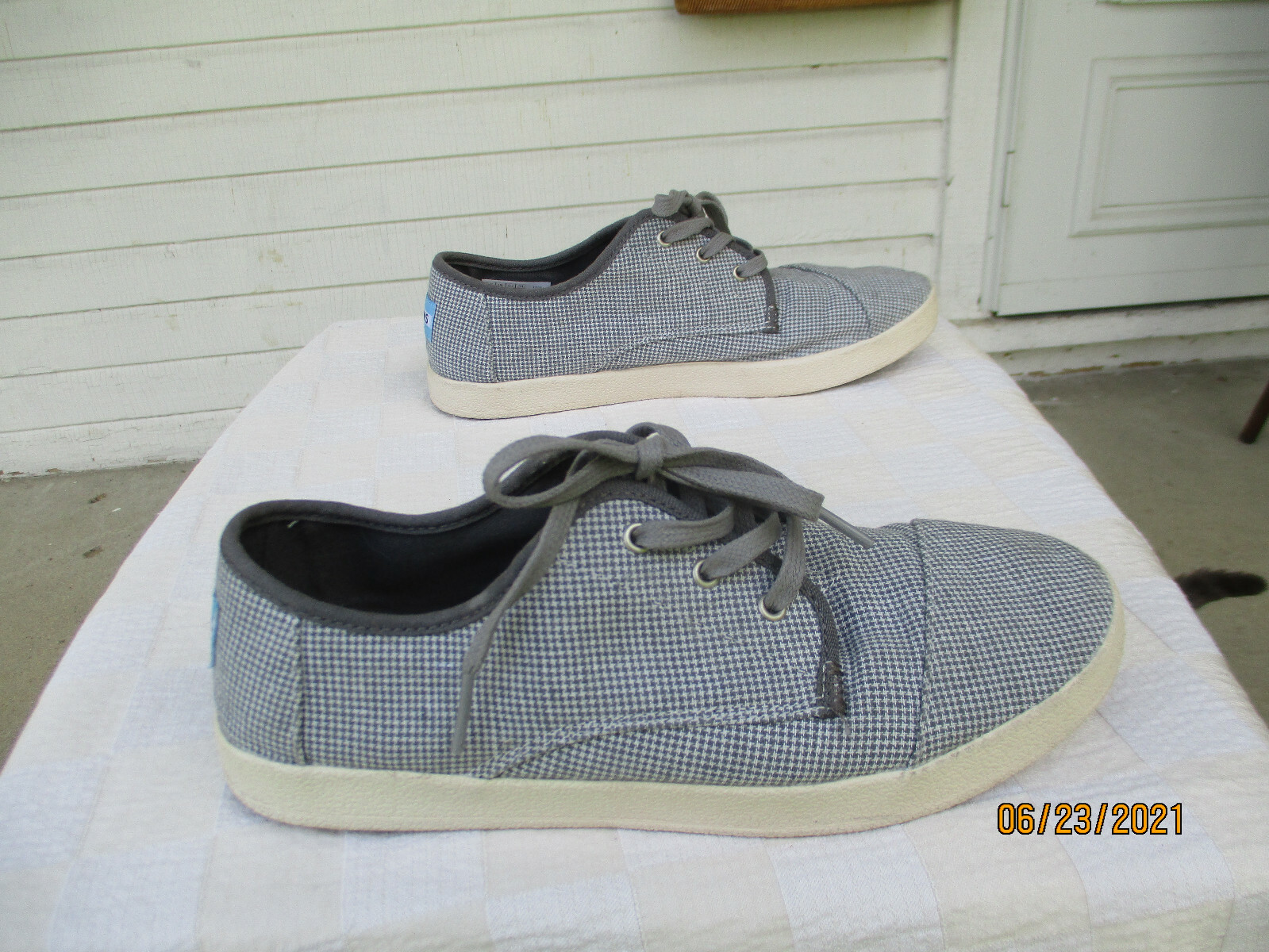как выглядит TOMS Gray White Check Shoes Size 8 фото