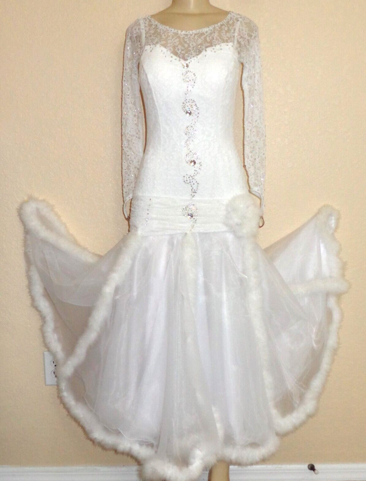 Ballroom dance competition dress in soft whit with built-in bodice suit