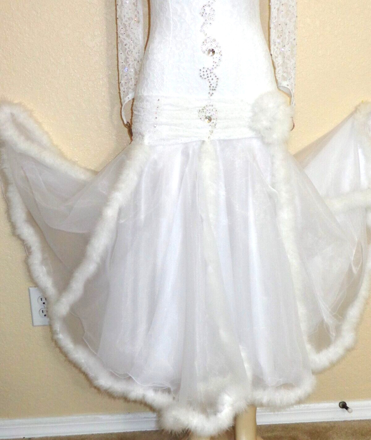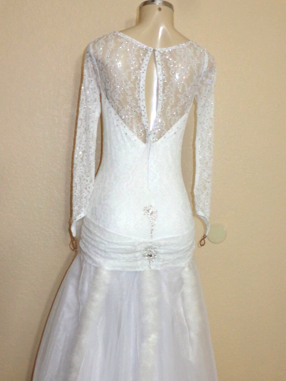как выглядит Ballroom dance competition dress in soft whit with built-in bodice suit фото