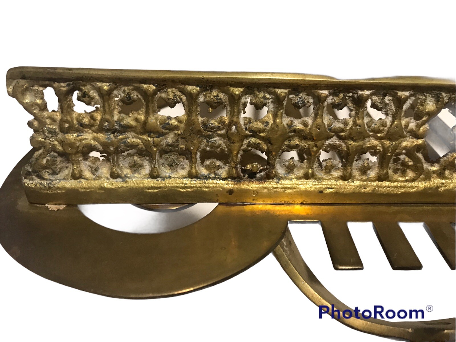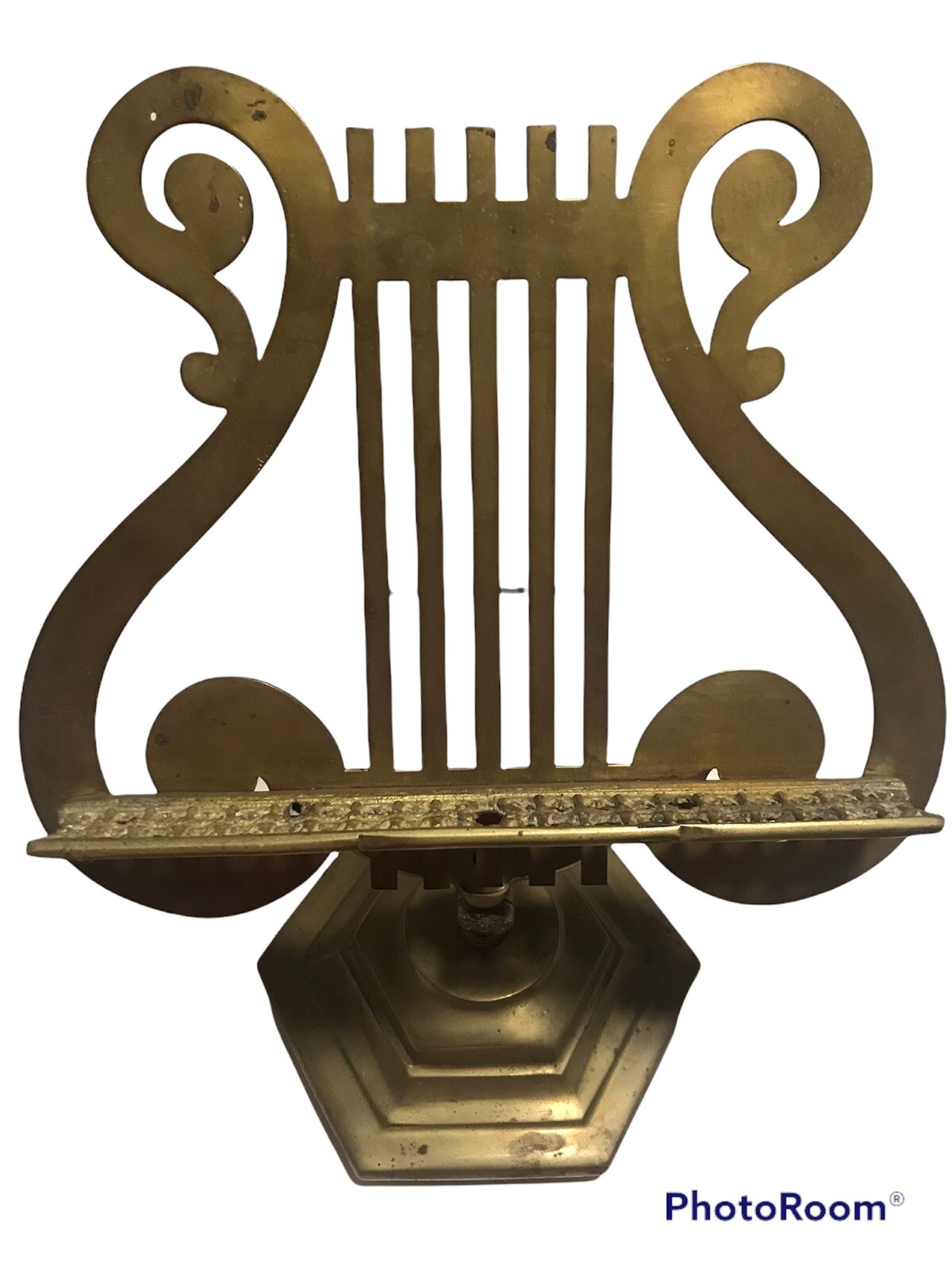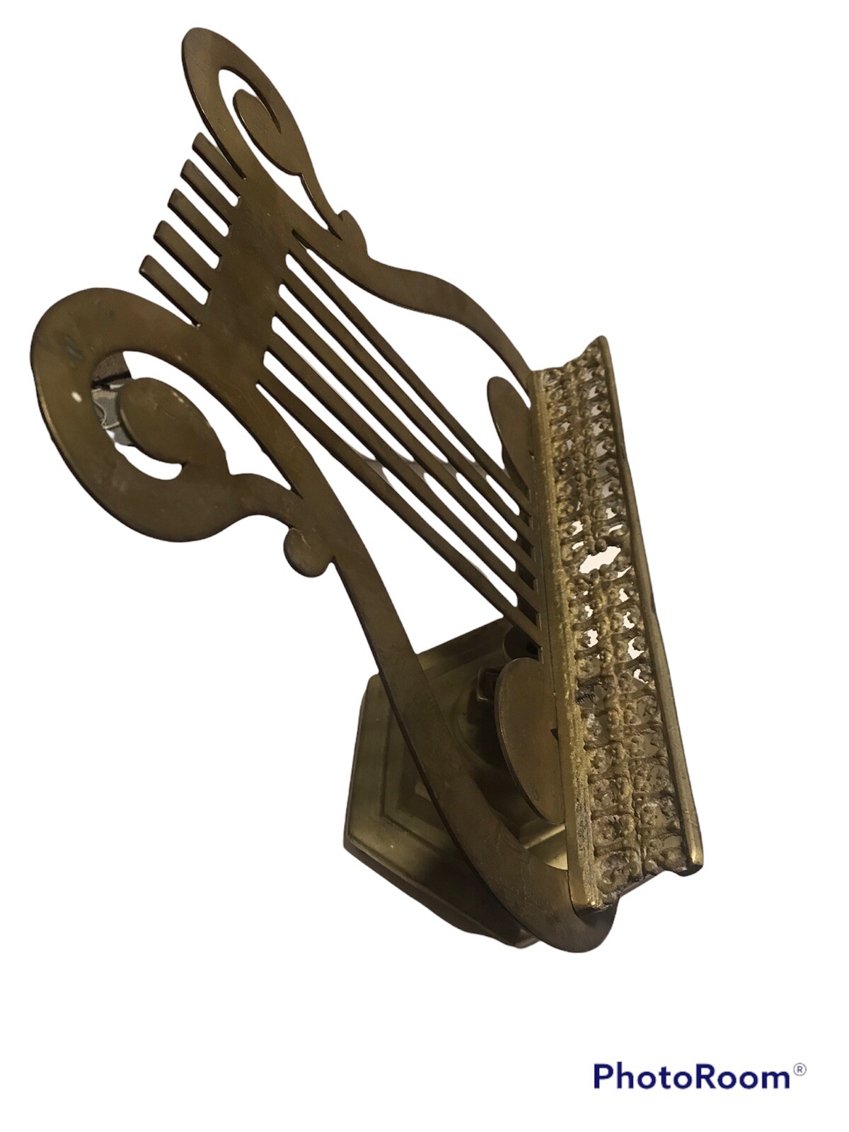 как выглядит Vintage Set Of 2 Brass Lyre Harp Sheet Music Footed Stands фото