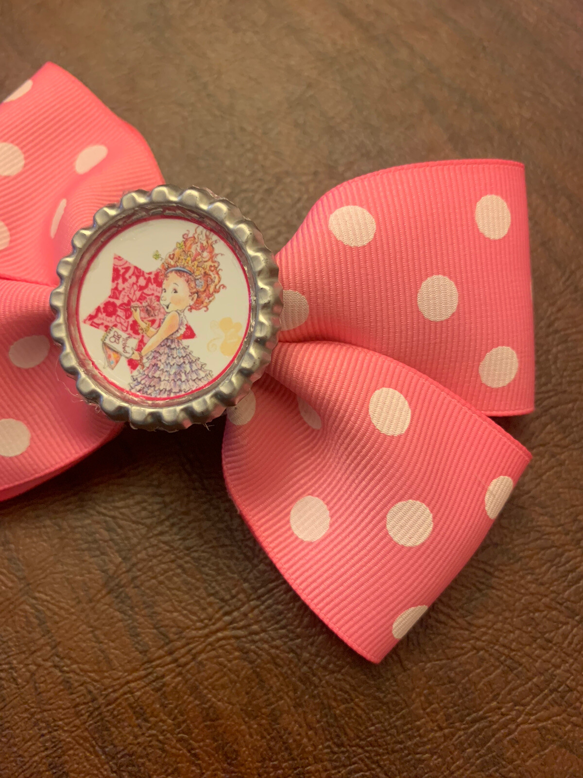 Fancy Nancy Disney Junior Pink Polka Dot Bottle Cap 4.5-Inch Girls Hair Bow