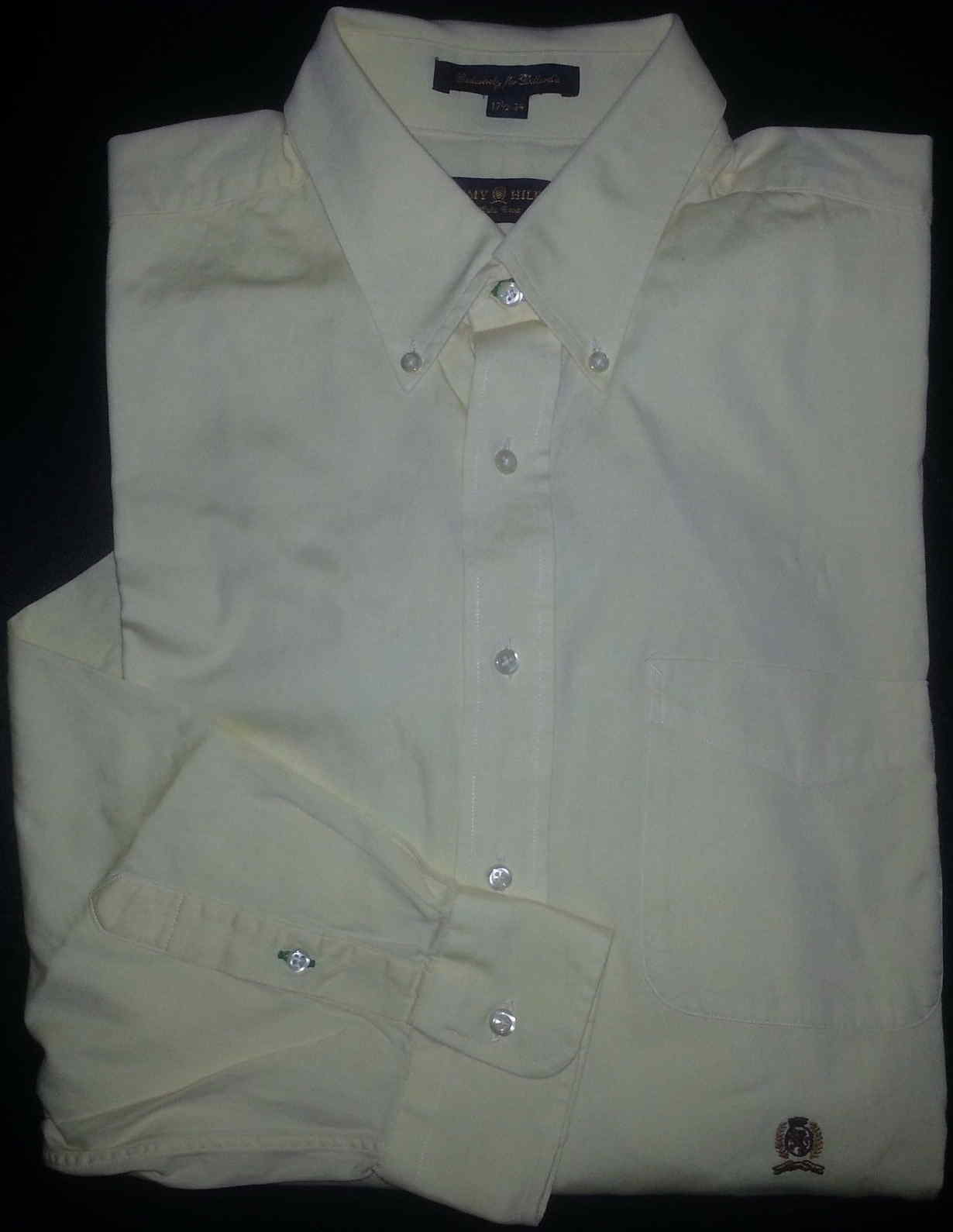 Tommy Hilfiger Shirt Button-Front L/S 17.5-34 Solid Pale Yellow Gold Crest s2871