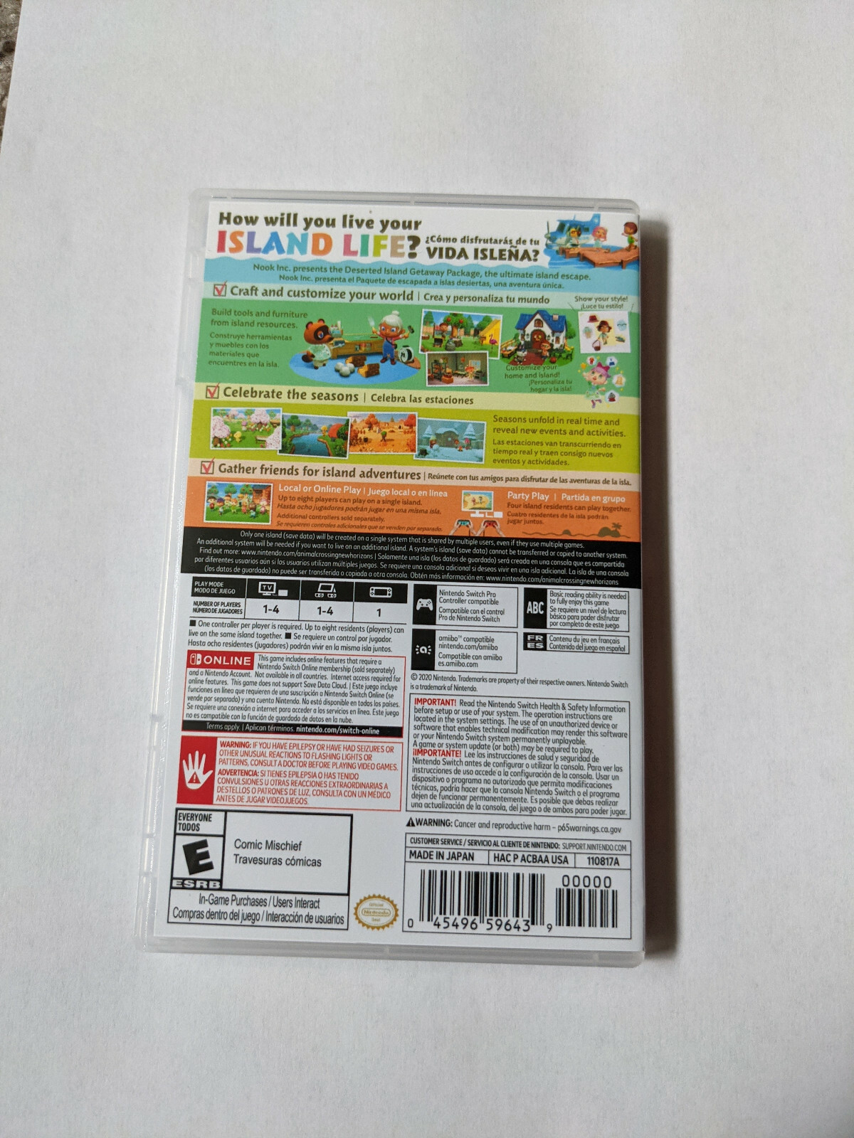Animal Crossing New Horizons Nintendo Switch Replacement Case Game Cover Art