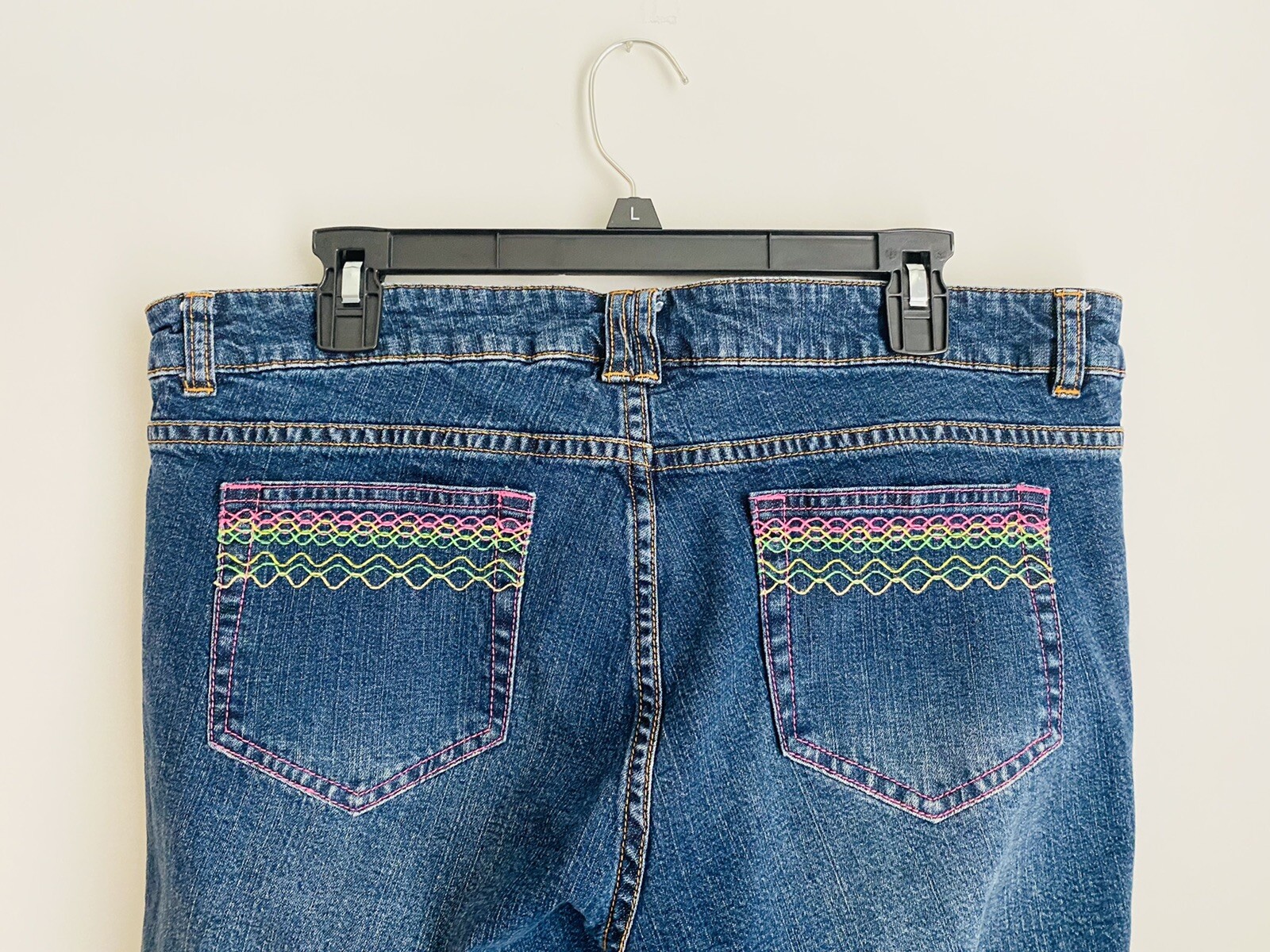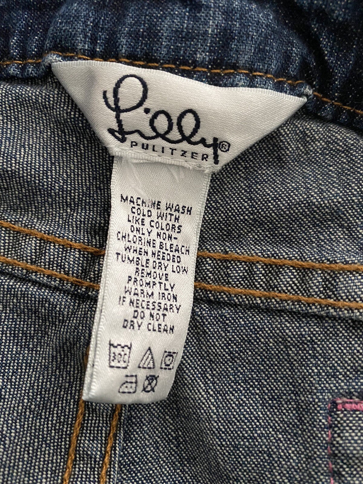 как выглядит Vintage Lilly Pulitzer Embroidered Pocket Bootcut Jeans Sz Unknown Dark Wash фото