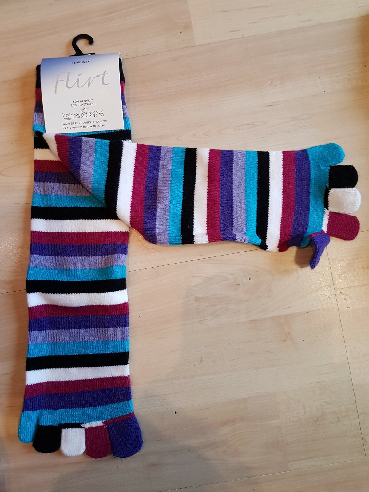 Ladies BNWT Multi coloured Striped Pirate Toe Socks One Size