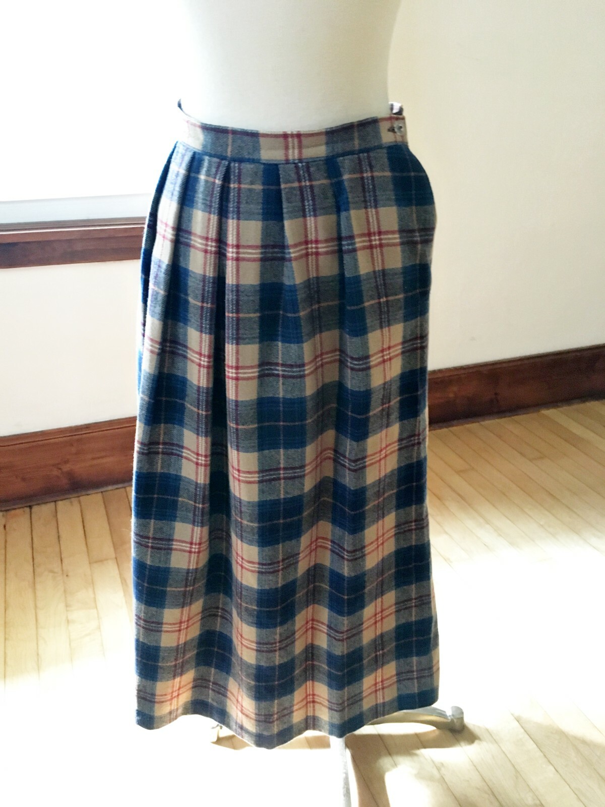 Vintage Pendleton Authentic Cailean Tartan Tan Blue Red Plaid Skirt Size 12