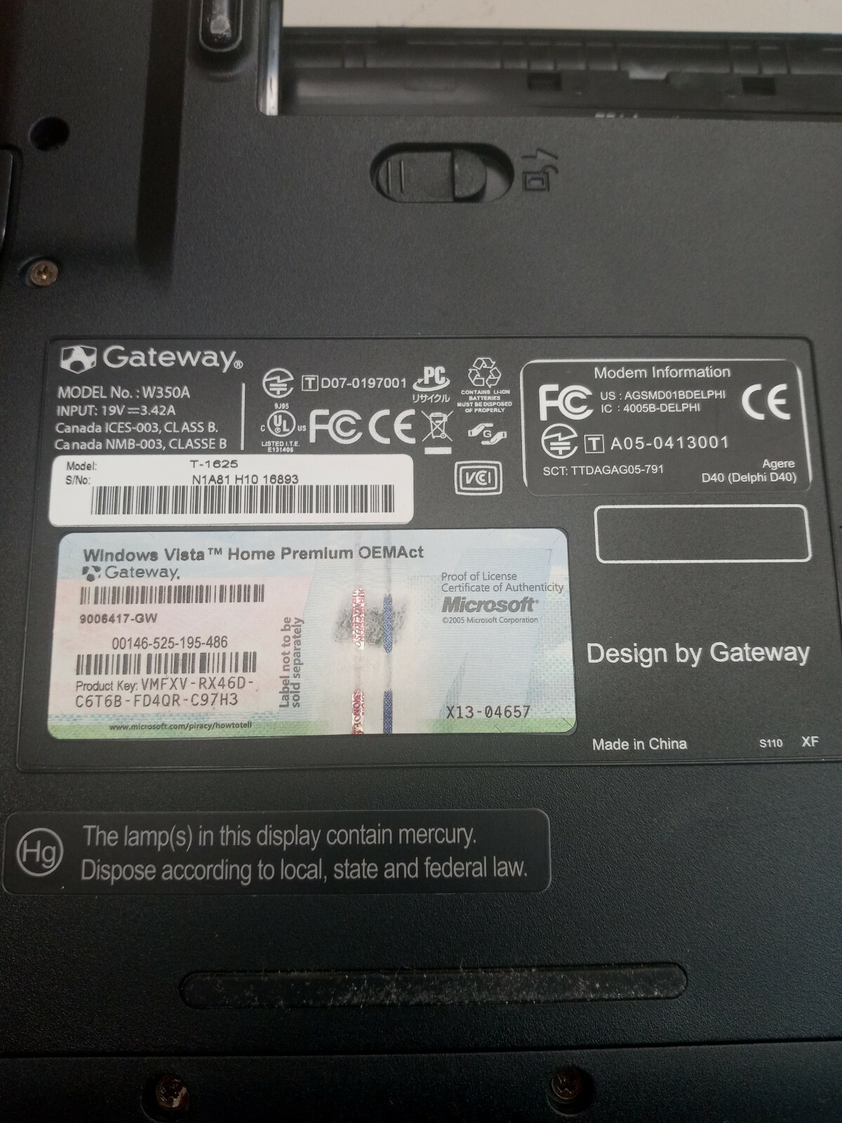 Модель: Gateway W350A