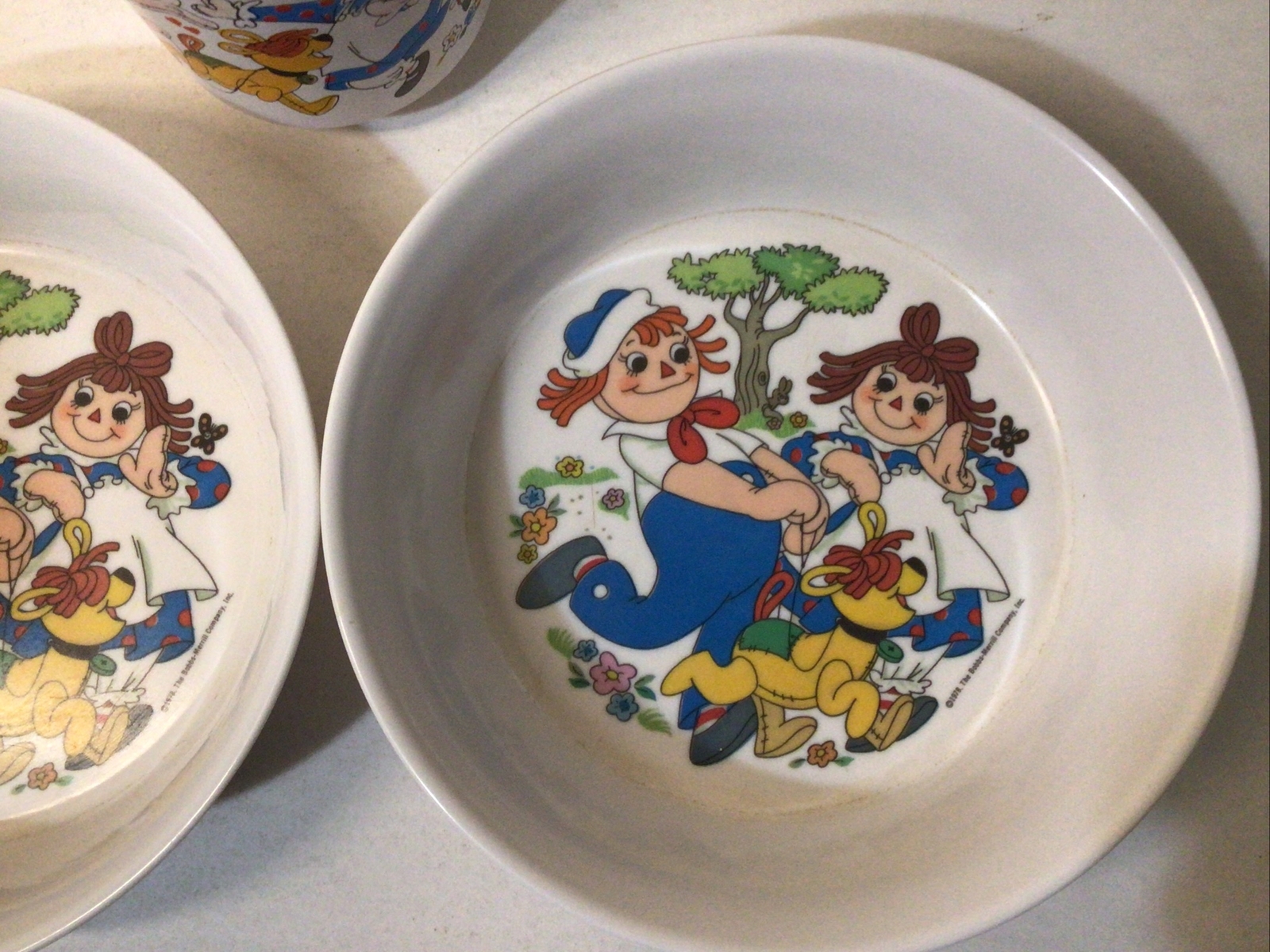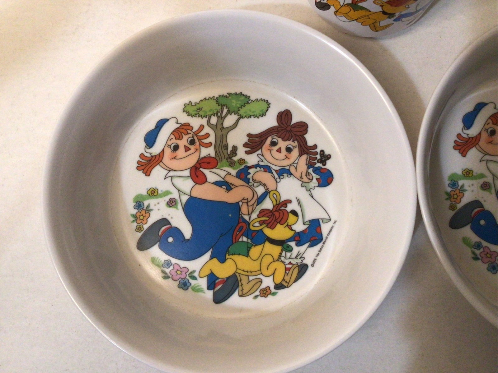 Rare VTG 1969 Oneida Ware Kids Raggedy Ann Andy w/ Dog Bowls 2 Cup 1