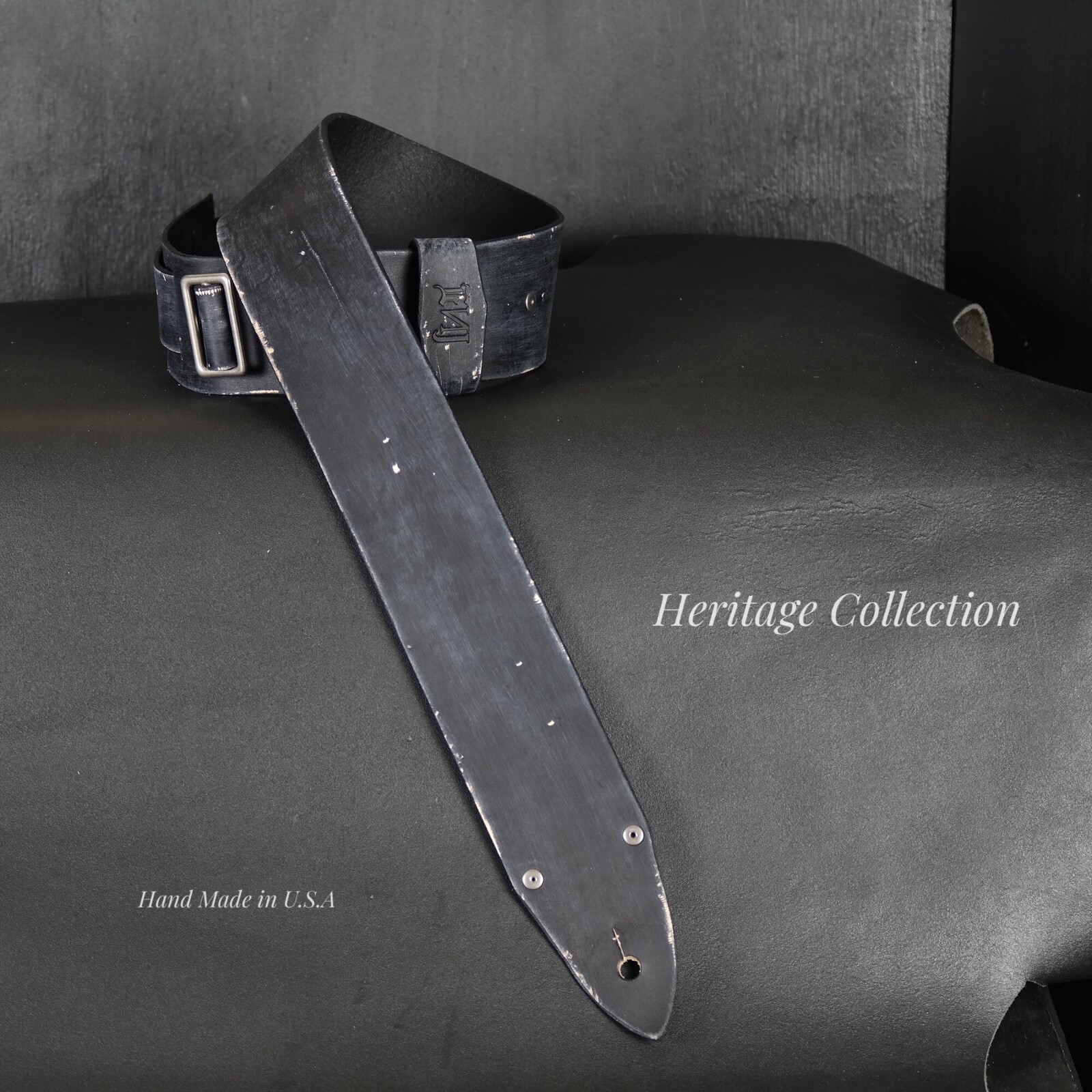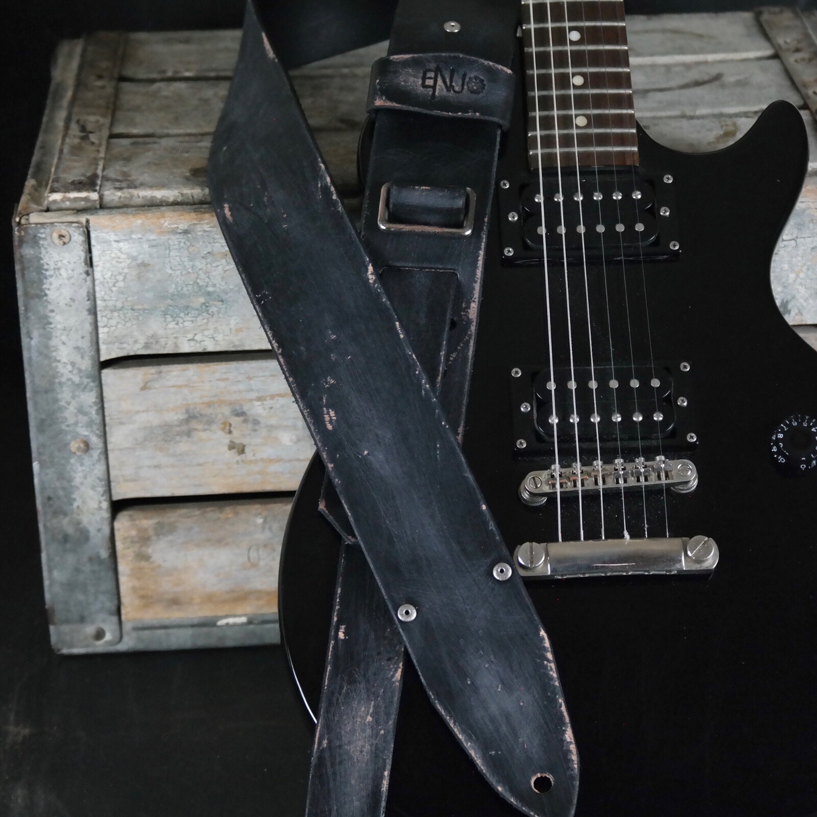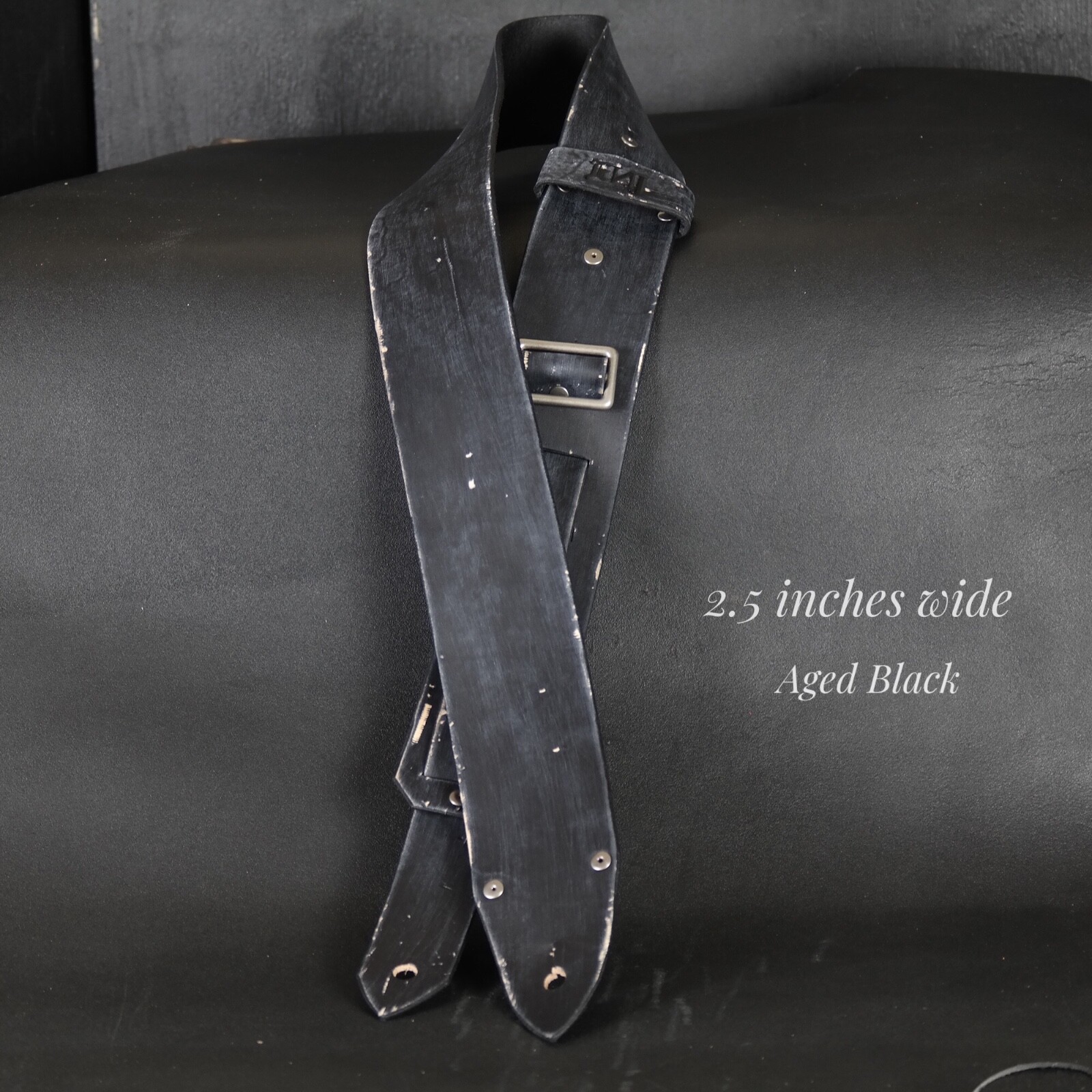 Aged Leather Guitar Strap. 2.5 inches Wide. Handmade. Distressed BLACK