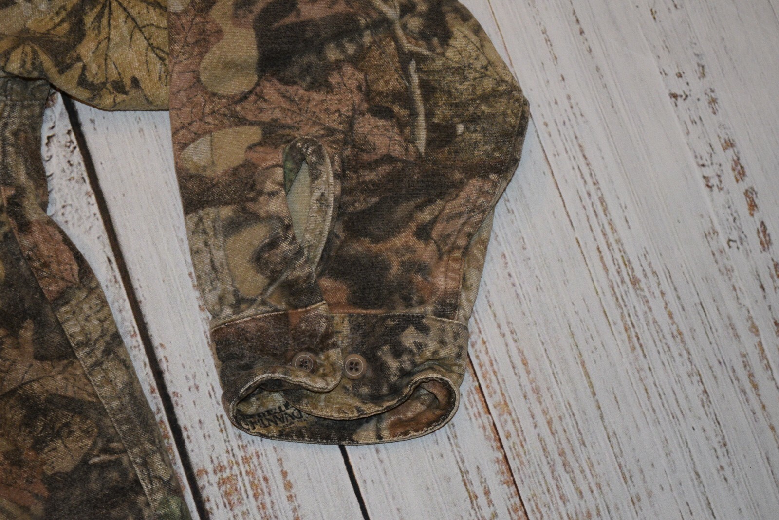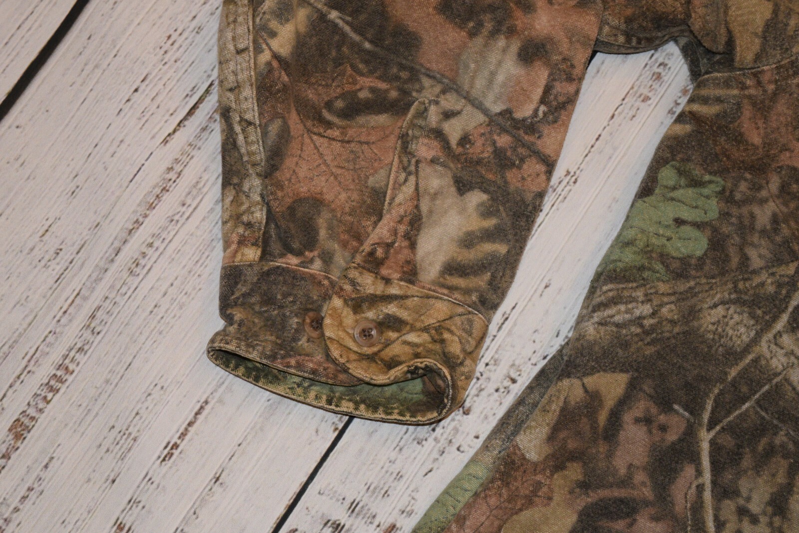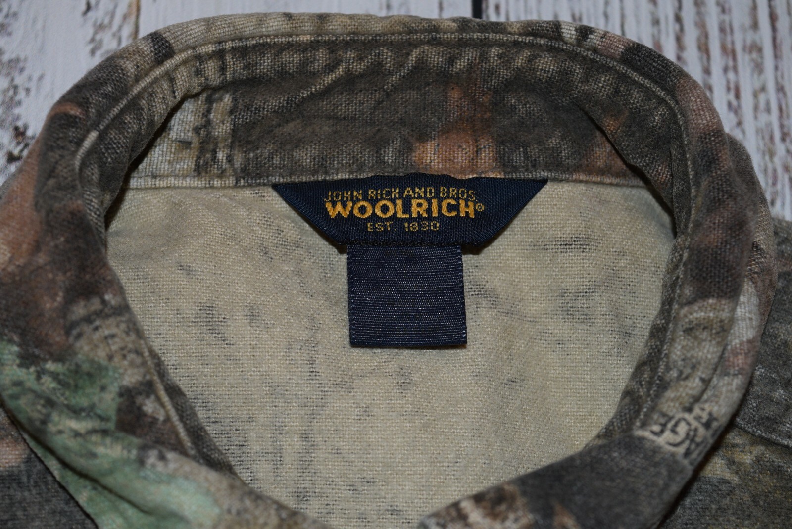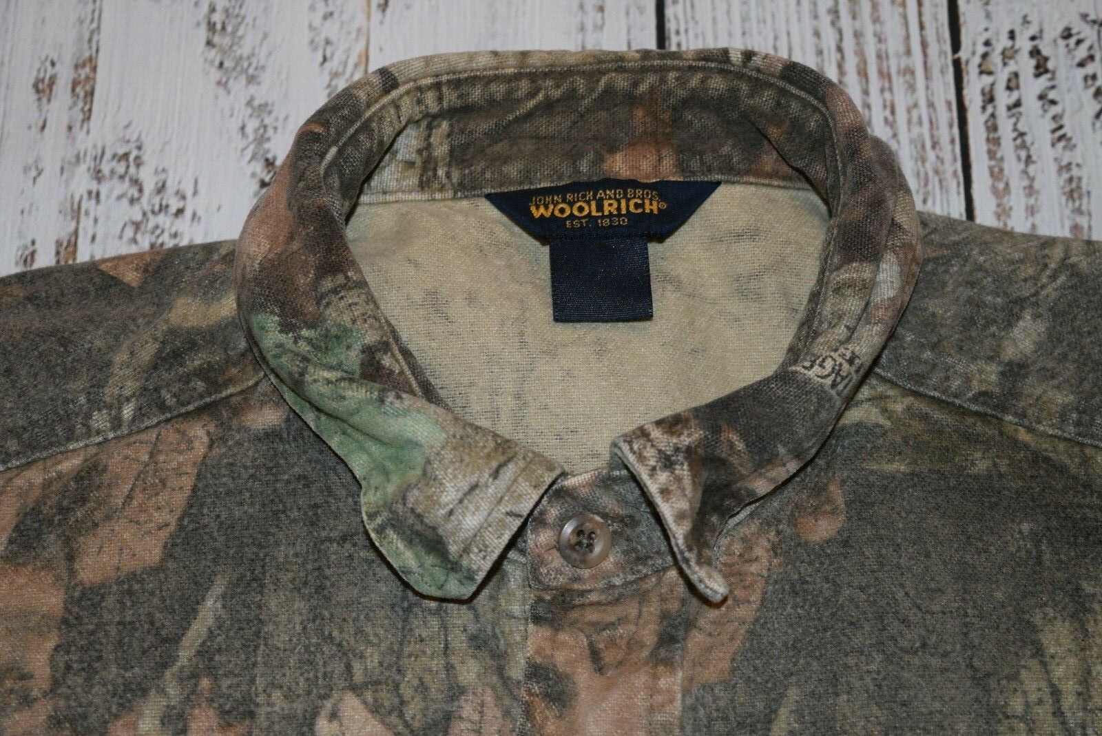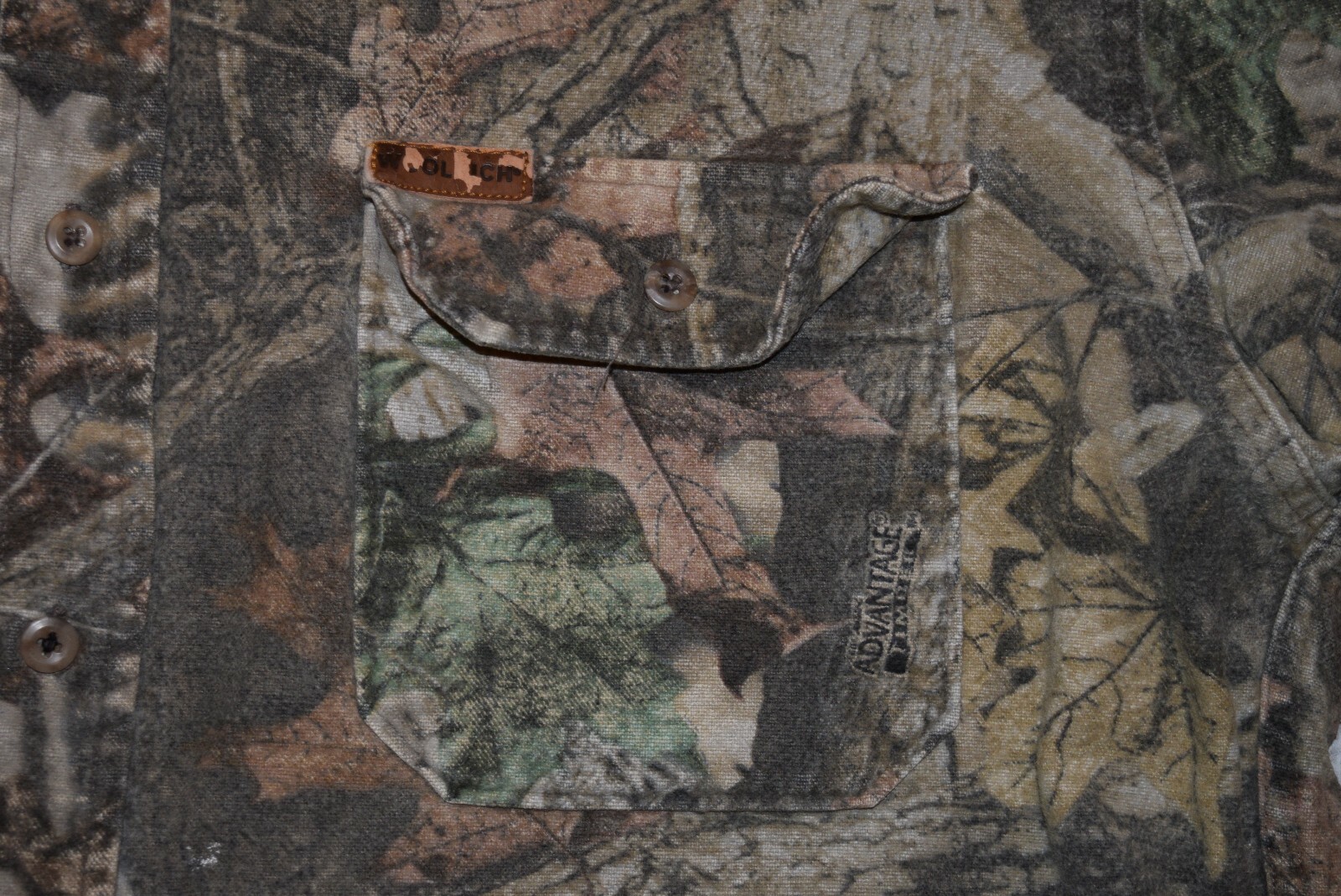 VTG WOOLRICH CAMO CHAMOIS SHIRT ADVANTAGE TIMBE CAMOUFLAGE SIZE L LARGE FADED