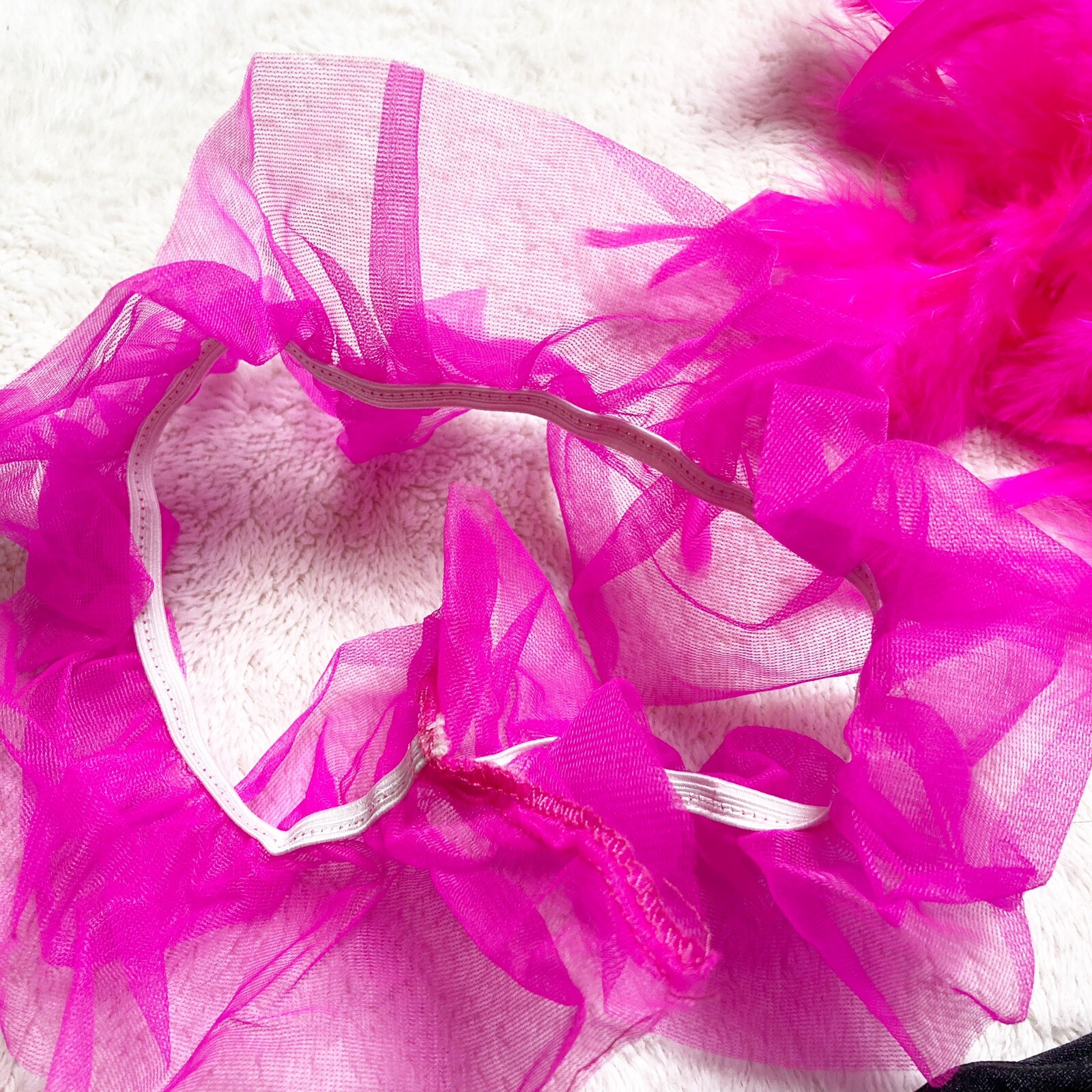 как выглядит dance costume accessories pink and black gloves garter and feather hairpiece фото