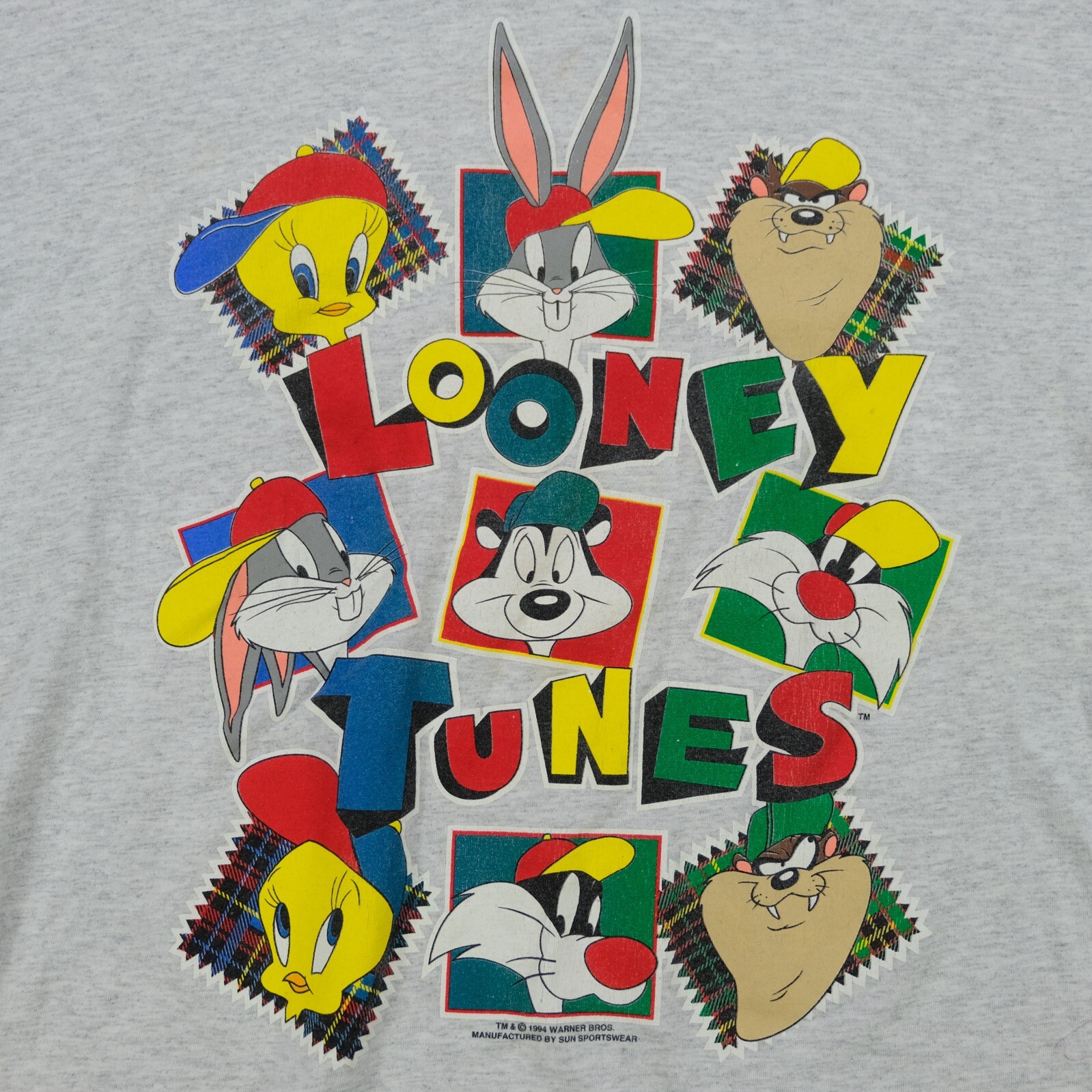 Rare VTG LOONEY TUNES Bugs Bunny Taz Tweety Sylvester Hoodie Sweatshirt 90s SZ M