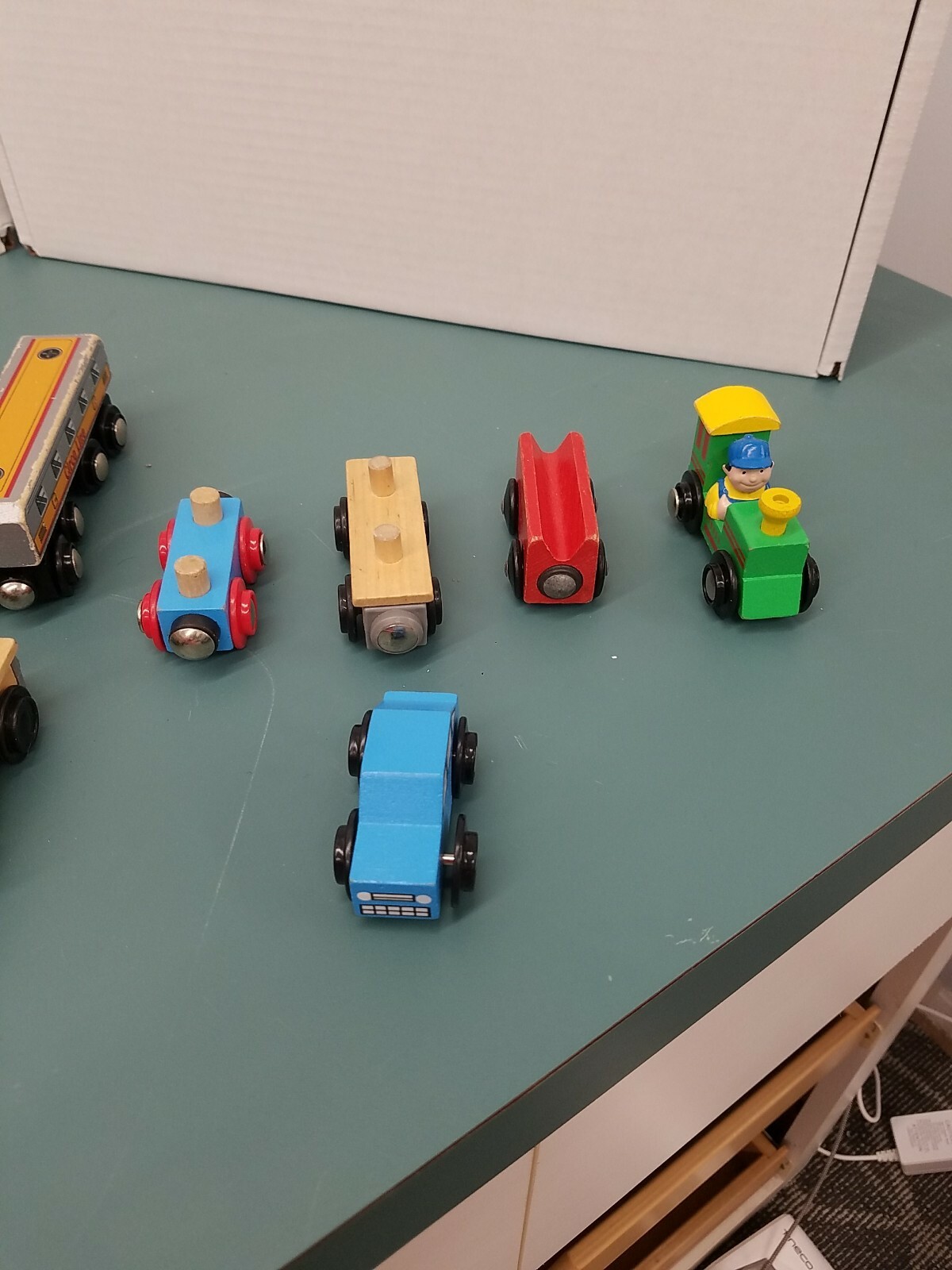 как выглядит Large Lot of 21 Wooden Magnetic Pull Behind Train Engines and Carts фото