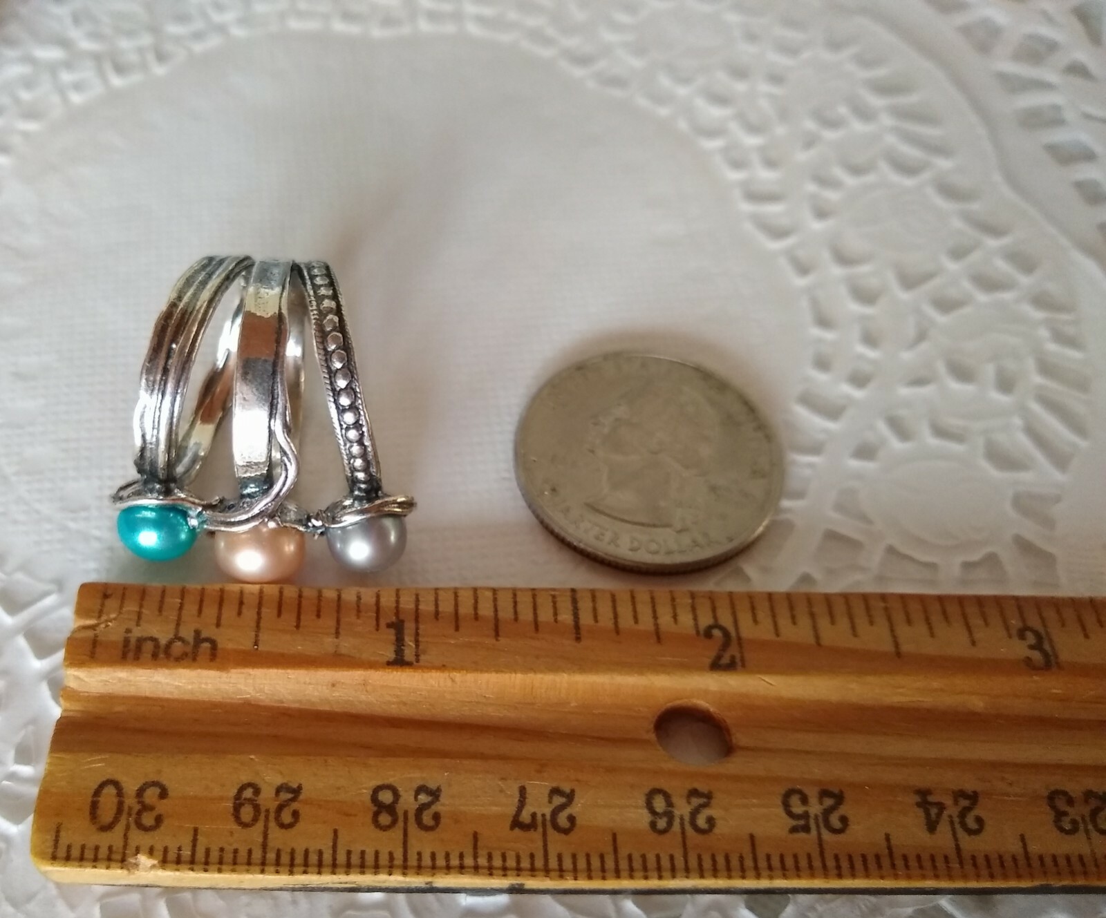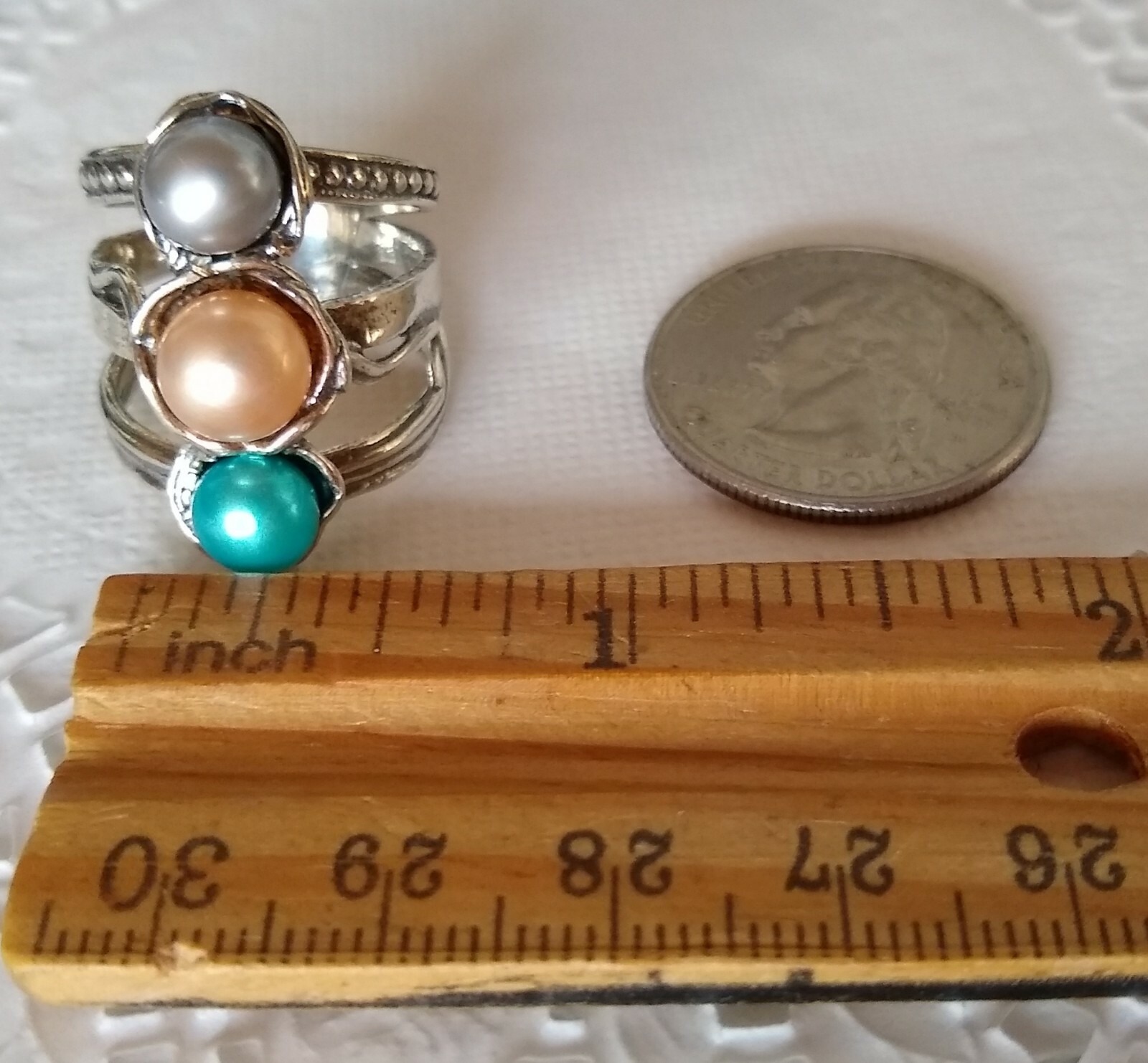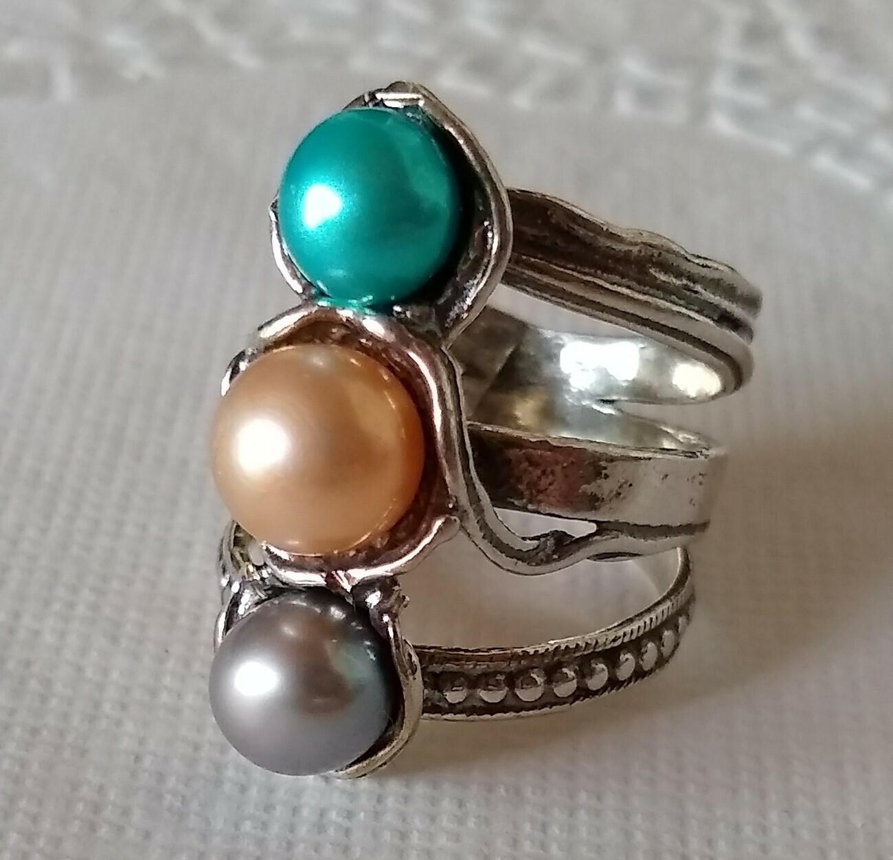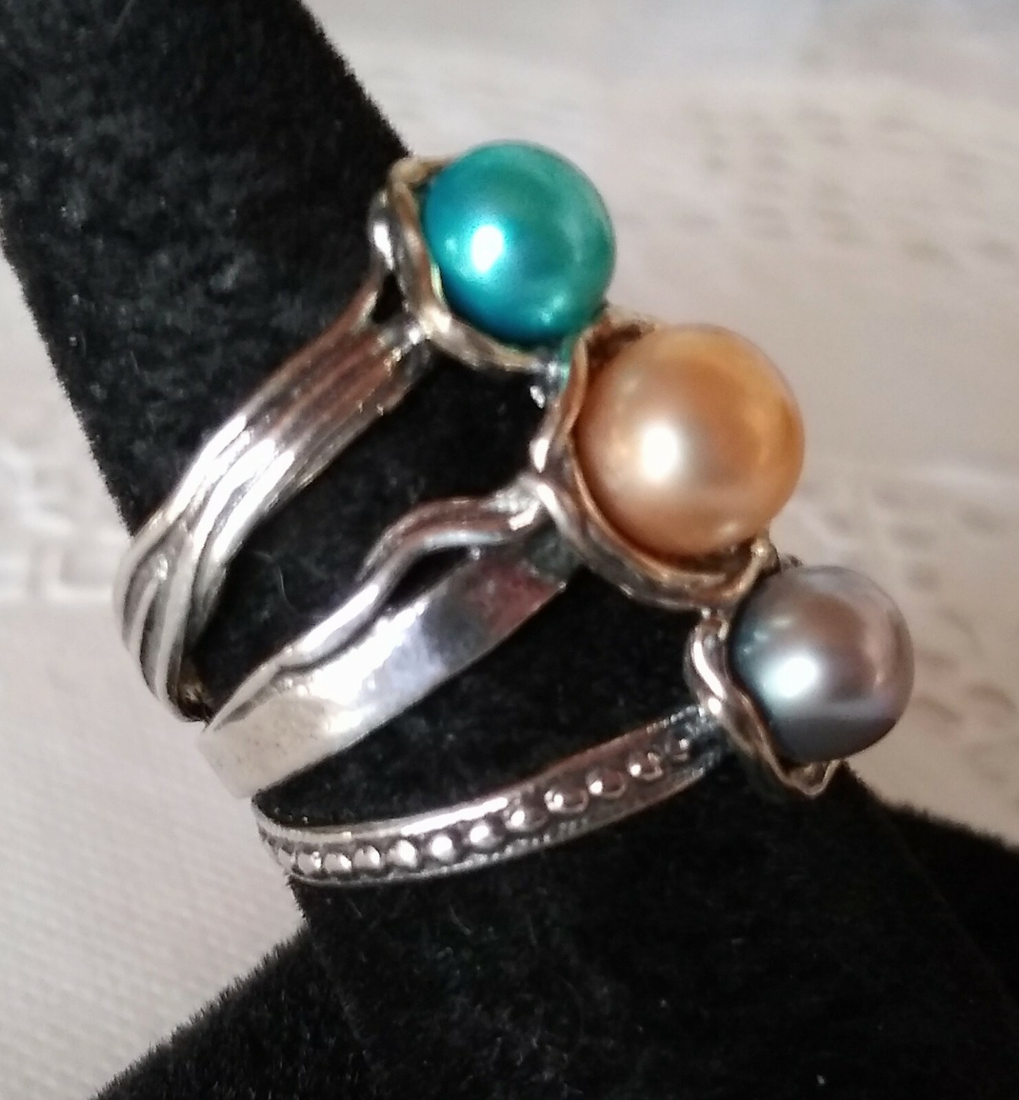 как выглядит Passage to Israel Artisan Freshwater Cultured Three Pearl Sterling Ring Size 7 фото