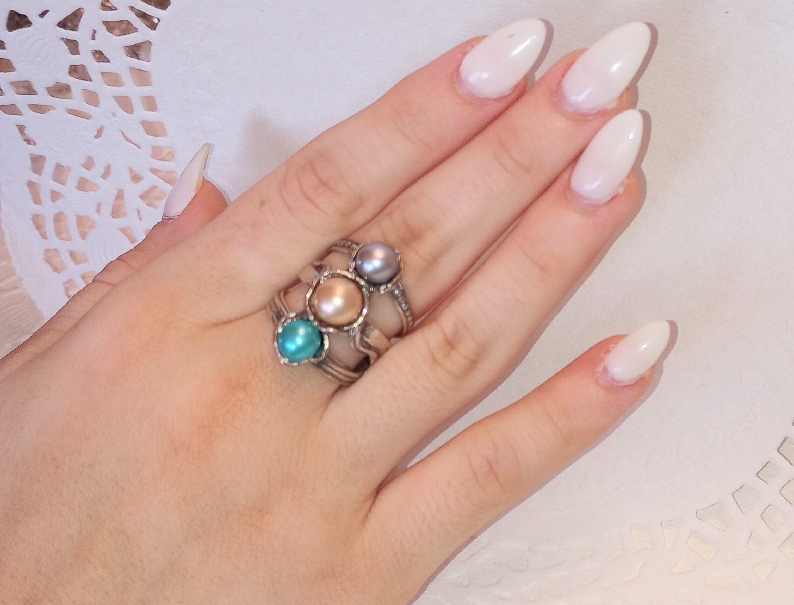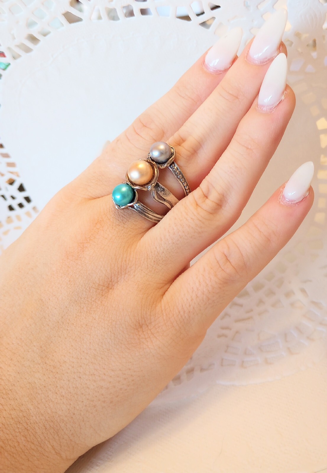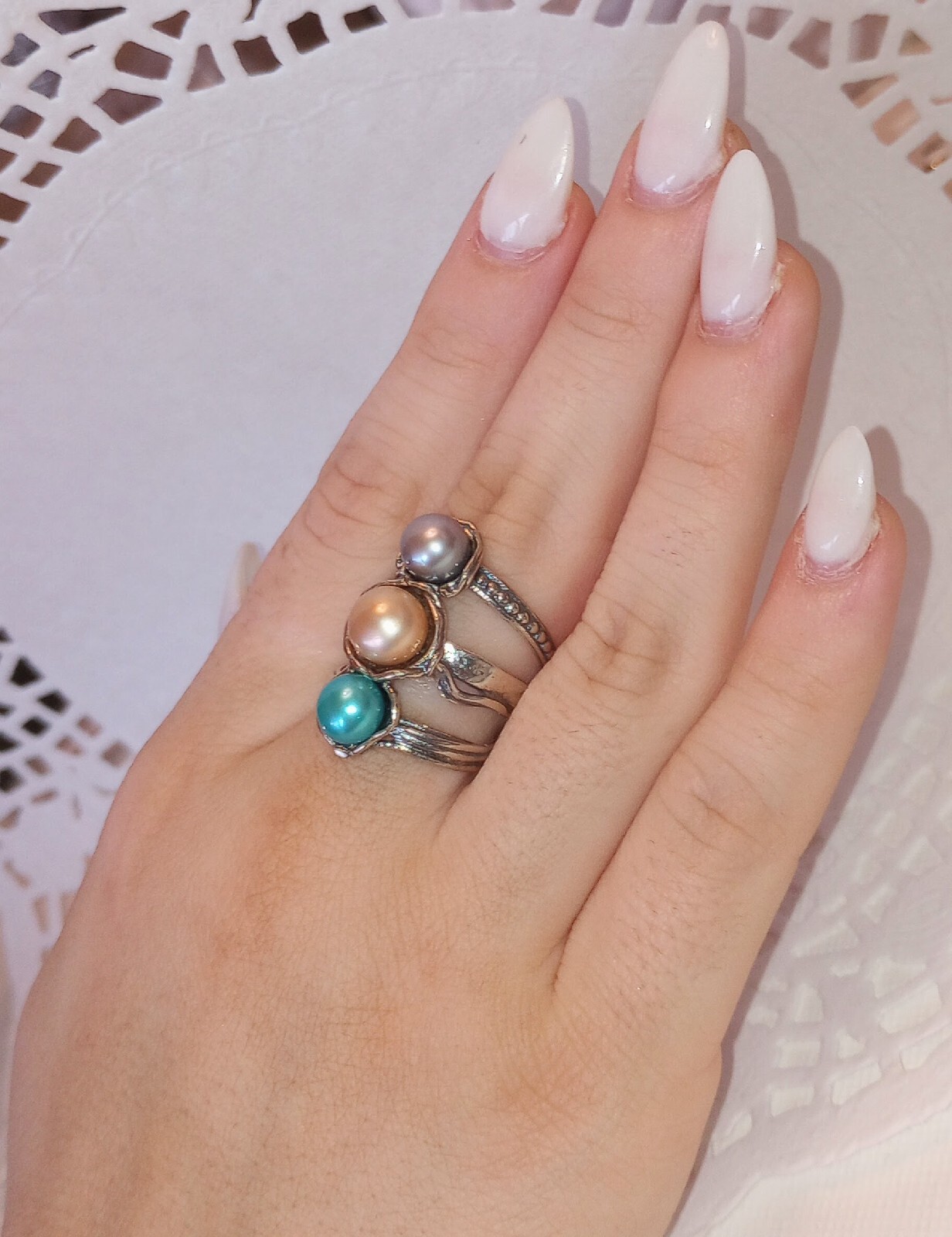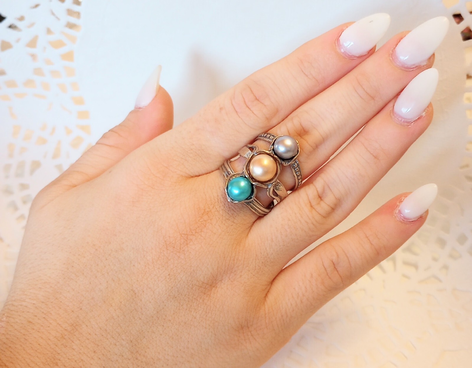 как выглядит Passage to Israel Artisan Freshwater Cultured Three Pearl Sterling Ring Size 7 фото
