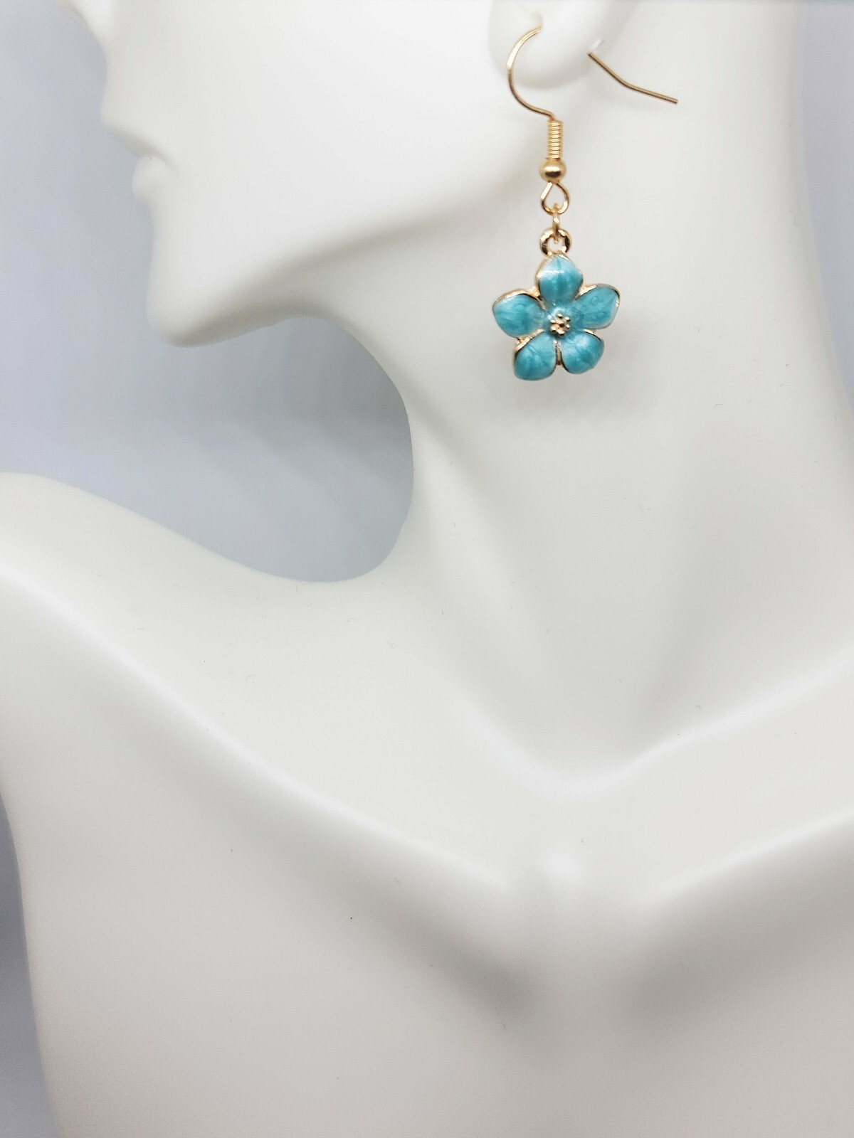 как выглядит Womens Light Blue Flower Drop Earrings фото