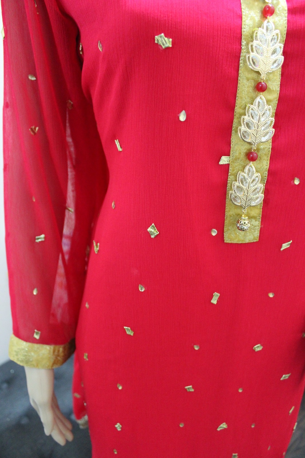 как выглядит Pakistani Pink Gold Chiffon 3-Pieces Suit with Fancy Buttons Gotta фото