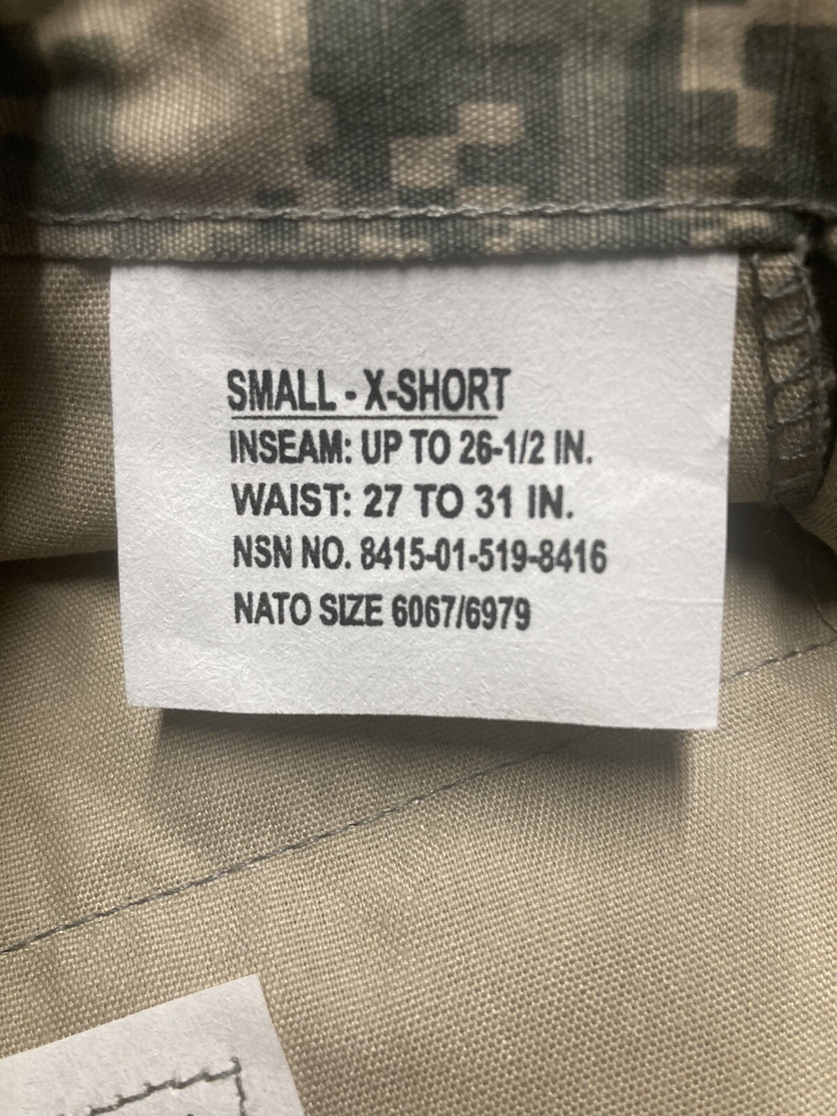 • ACU Combat Uniform Trousers Small X Short NOS