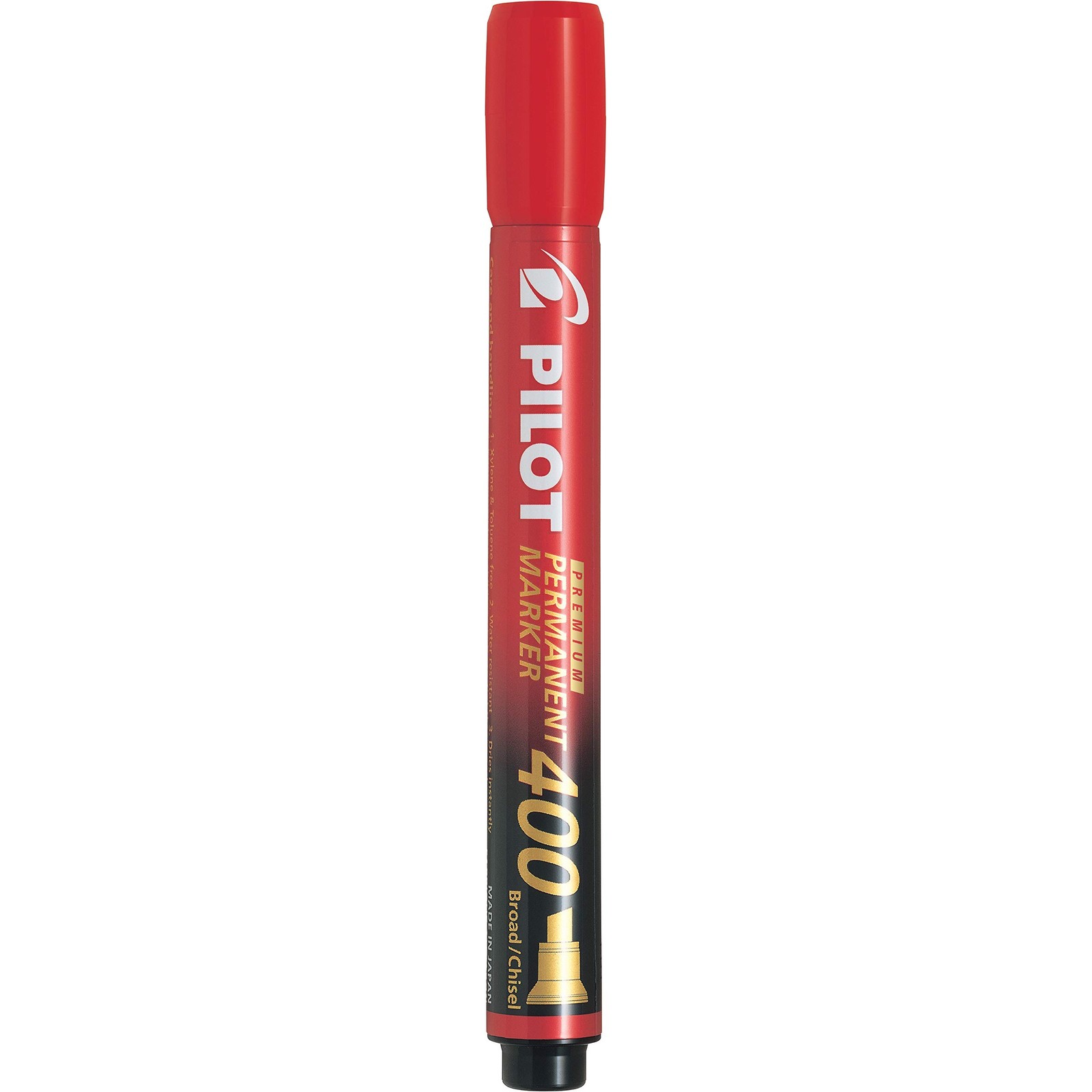 PILOT Premium 400 Permanent Markers, Broad Point Chisel Tip, Red Ink, Box of 12