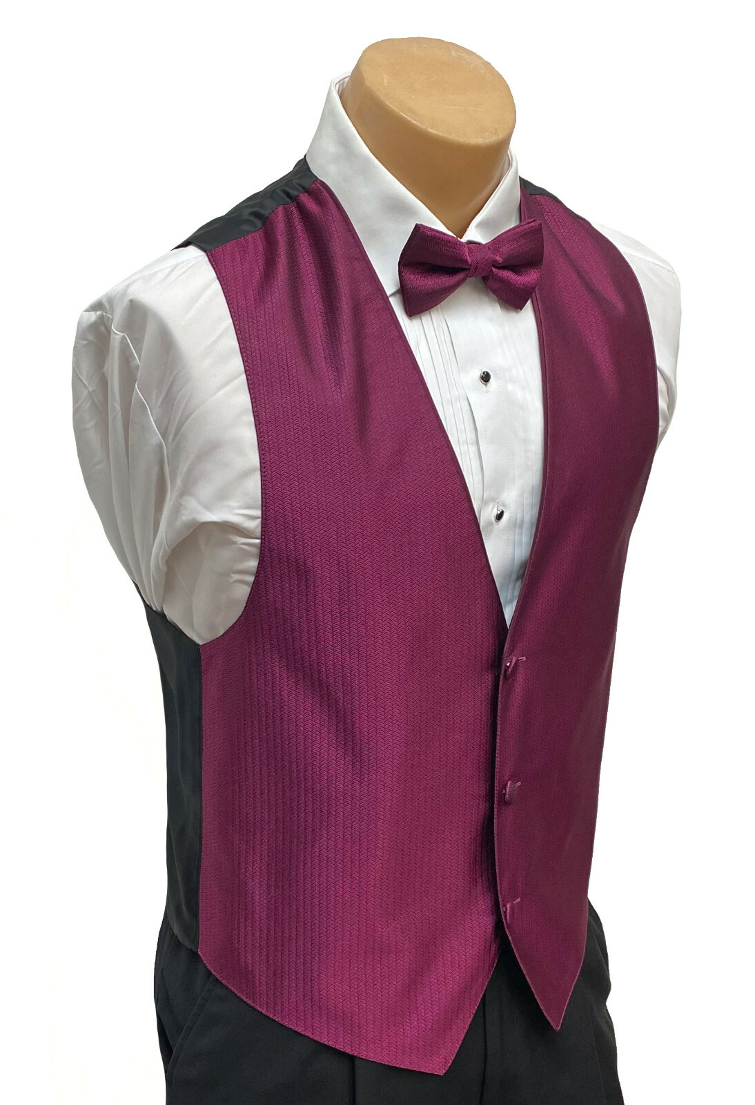 Men's Prism Sangria Tuxedo Vest Tie Purple Red Herringbone Wedding Mason Prom