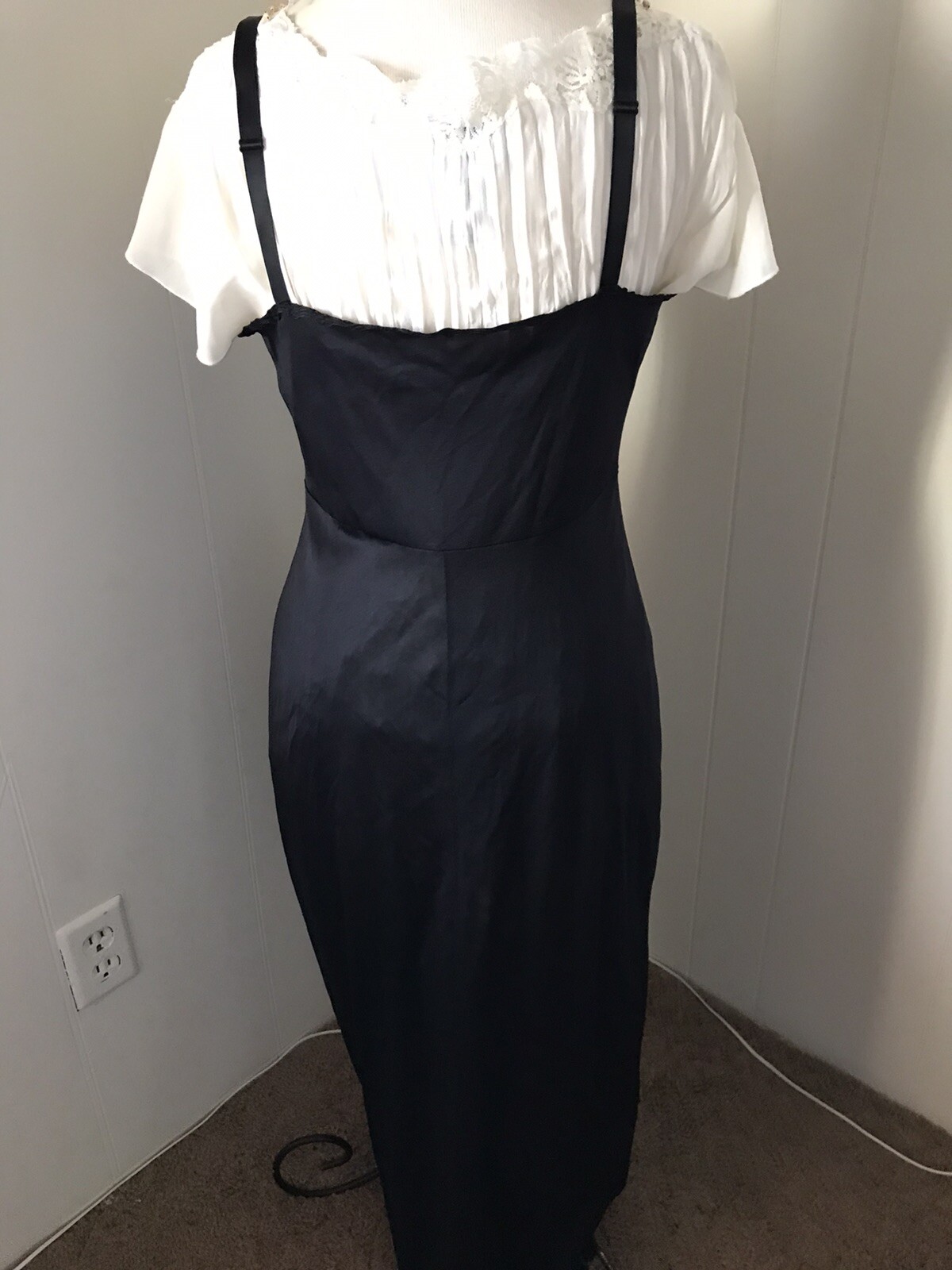 как выглядит VTG Olga Lace Trim Nylon Adjustable Straps Full Length Slip 34 Black фото