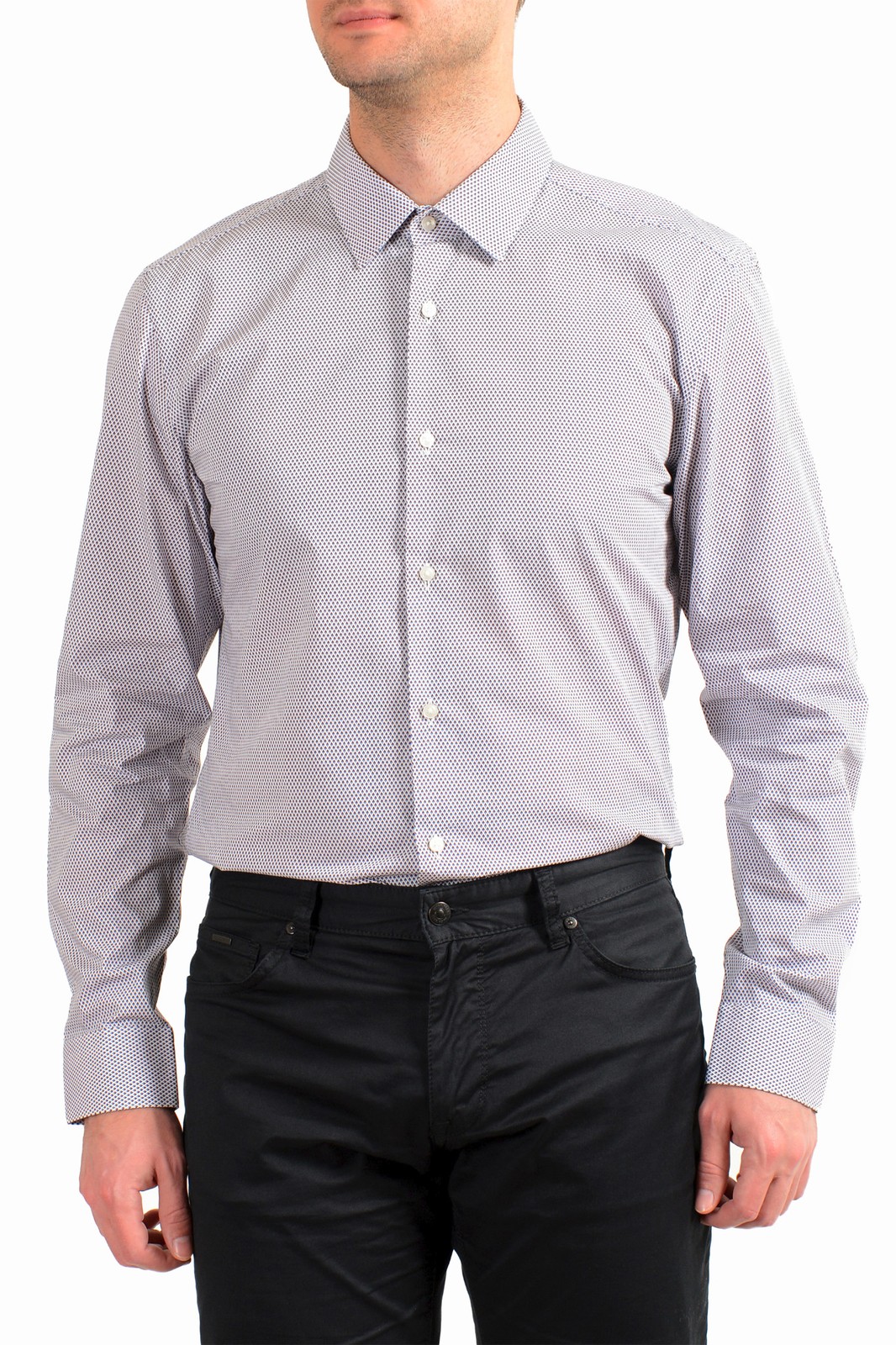 как выглядит Hugo Boss Mens "Isko" Slim Fit Geometric Print Long Sleeve Dress Shirt фото