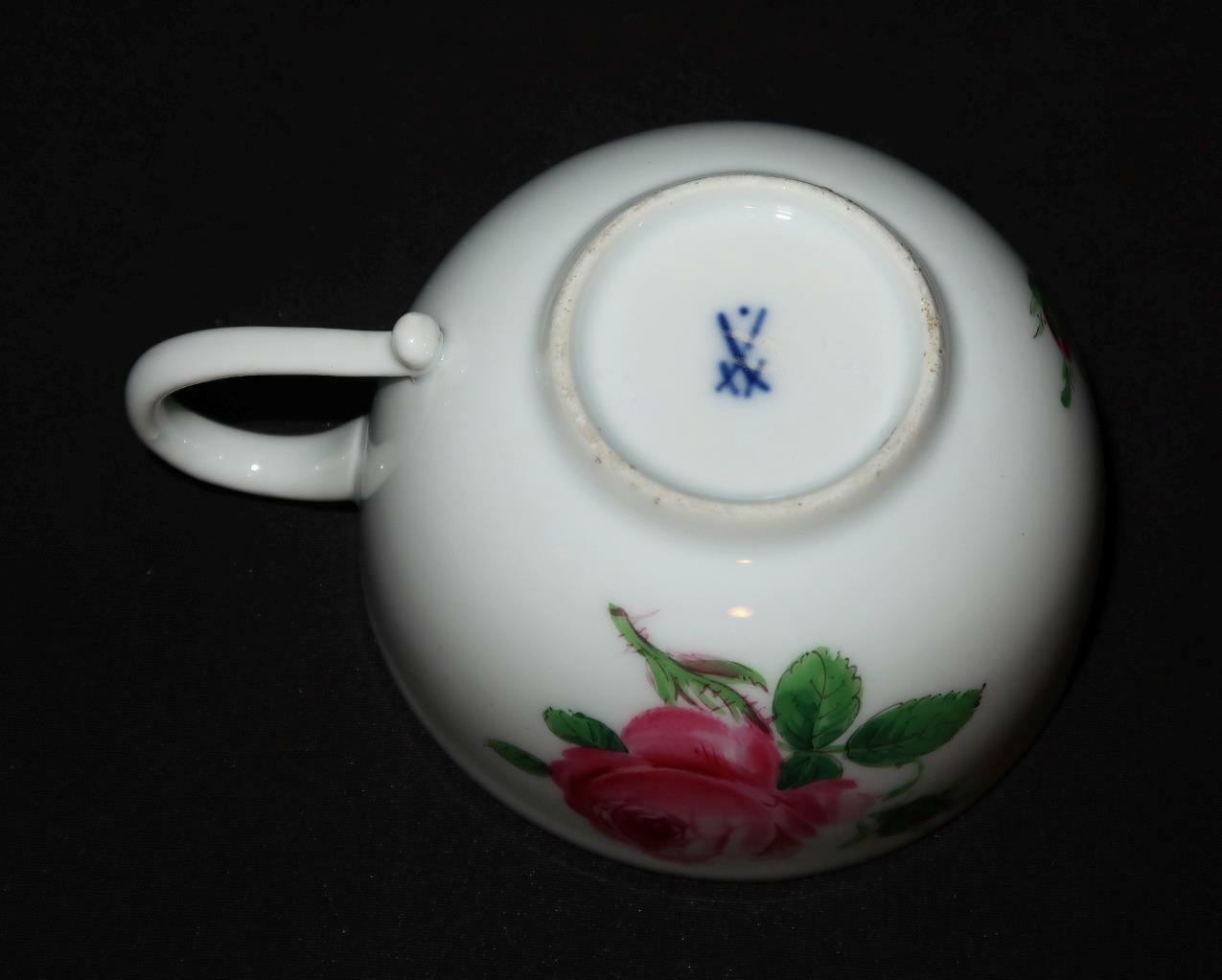 • Meissen PINK ROSE Crossed Swords Backstamp Coffee or Tea Cup, Smooth Rim