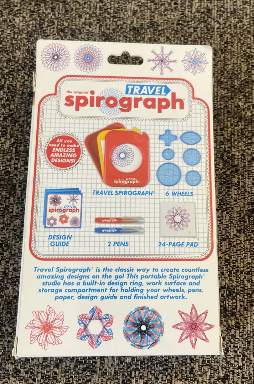 Kahootz Travel Spirograph 10-piece Set. New In Packaging. Pad/guide Pens Inc.