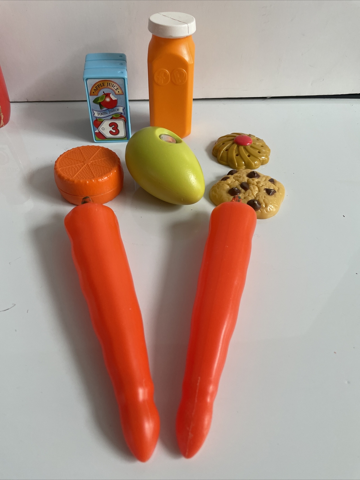Wooden Block, Plastic Play Grocery Food Items, Vintage Kitchen Pantry