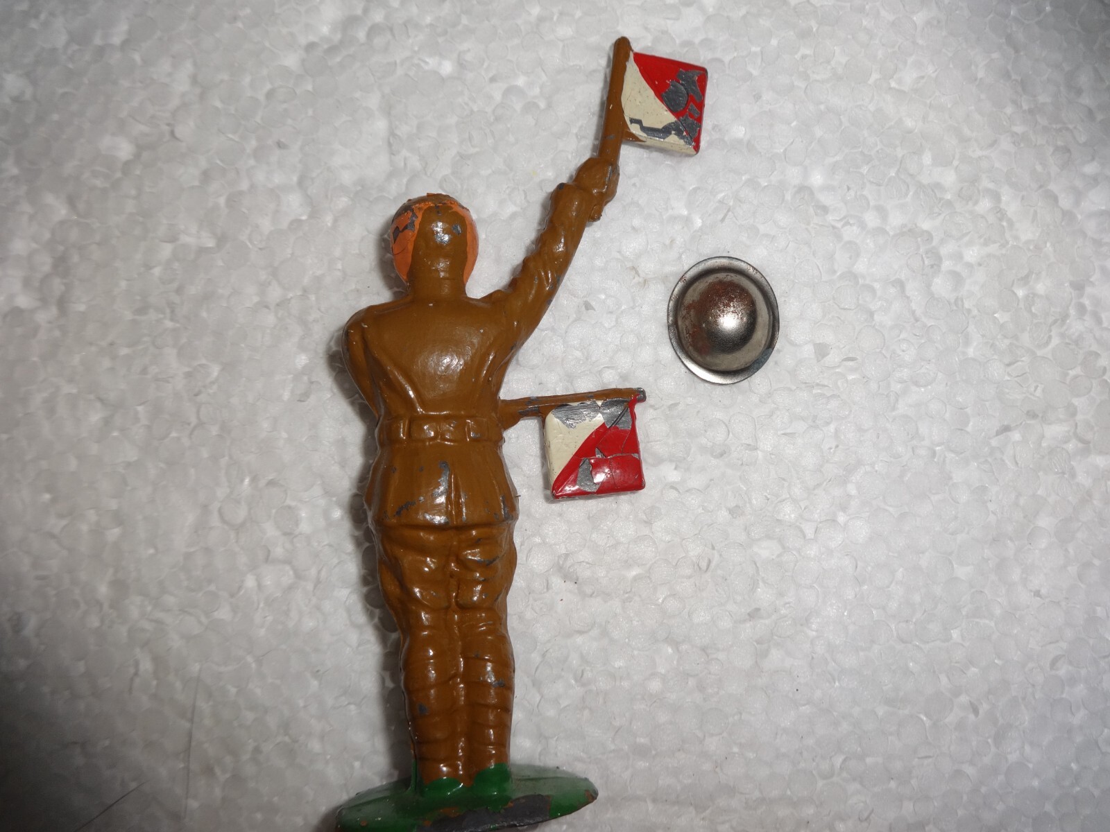 как выглядит Vintage Painted Grey Iron Standing soldier with Flags 3" tall 16 фото