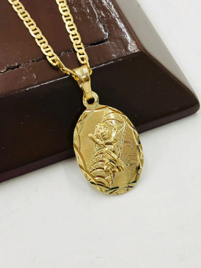 Baby Jesus Charm Necklace Womens Yellow Gold Filled 20 Everyday Mariner Chain